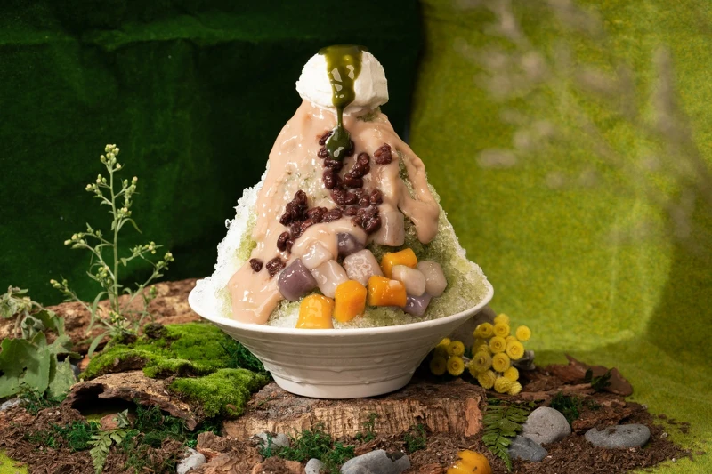 新品除了草仔粿飲品「青糰波波沙」外,還有推出全新的冰品「雪藏宇治金時」,採用日本靜岡抹茶醬,搭配清原芋圓招牌的紅豆和芋泥組合,還有冰山頂上的一大球香草冰淇淋,風味多層次,每一口都充滿驚喜感,不論是抹茶控、芋頭控都別錯過啦!