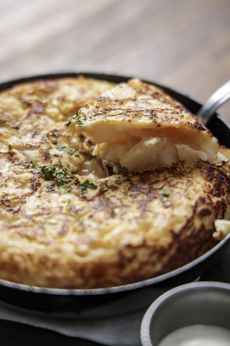 據說最初源自於西班牙北部的巴斯克地區(País Vasco),從菜名字面就能看出是以馬鈴薯、洋蔥和蛋製成,普遍程度更是從家戶間到餐廳都能嘗到這樣口感鬆軟、味道濃郁的烘蛋料理。之所以為人喜愛是來自於它料理簡單卻相當美味且極具營養,無論當作正餐或是作為點心,都非常適合。