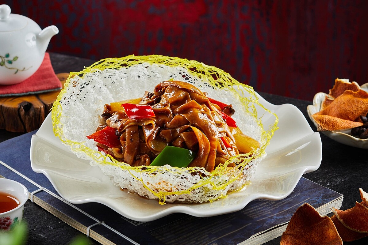 這道料理是過去香港大廚測試廚房新人的必考題,從成品就能看出手藝功力,此料理要好吃從處理鵝腸就能看出端倪,要將鵝腸內的油脂處理得當,過多則顯油膩,過少則無味。並且要修剪成每段恰好的30公分,接著快速焯水,捲曲後撈起瀝乾,接著爆香陳皮、蒜蓉、和自製的油豆豉,全程以大火快炒完成口感肥嫩爽脆的鵝腸,加上大火爆炒的鑊氣迷人的香氣,絕對值得一試。