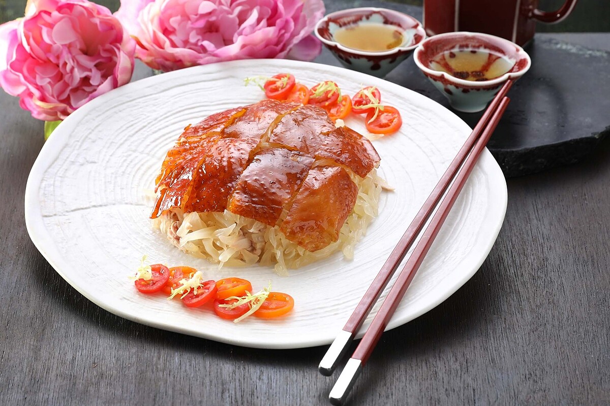是道中菜少見的溫沙拉,獲得許多餐飲圈美食家、作家的青睞,同時也是望月樓的銷售常勝軍。要把酥炸完成的脆皮雞斬下,取皮拆肉,接著雞絲先加足量的泰國金柚肉,與摻了青梅、柚子醬的酸甜醬汁拌勻裝盤,最後放上金黃薄脆的切塊雞皮,一吃酸甜迸發,再嚼皮酥肉嫩還有柚子香,清爽美味且多種口感相疊,讓人停不下筷子。