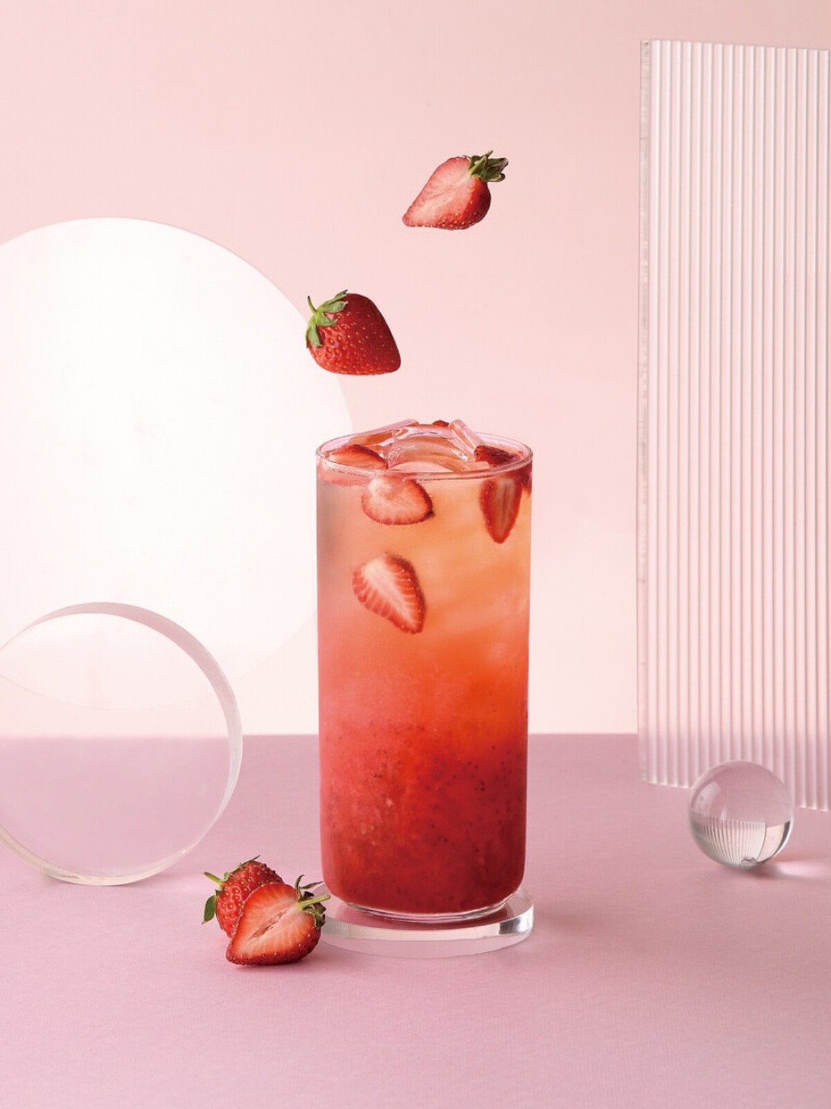 一秒狙擊手搖飲控們的少女心就是這杯!以蜜桃紅茶為基底,加入新鮮草莓與酸甜檸檬,入口感受濃濃的草莓果香與蜜桃茶香,多層次的酸甜風味,口感十分清爽,喜愛清爽系列手搖飲的人千萬別錯過啦!