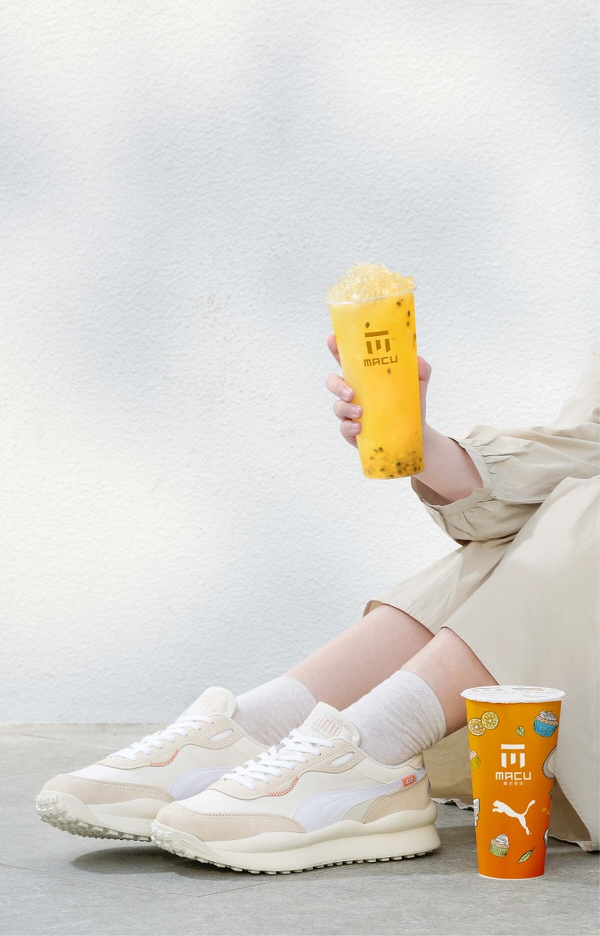 麻古茶坊首度與 PUMA跨界聯名推出「香橙Q豹」限定飲品,以麻古的招牌香橙果粒茶為基底,再加入Q彈滑溜的全新配料「波波條」打造出酸甜清爽的豐富口感,喜愛嚐鮮的人一定要試試這杯!
