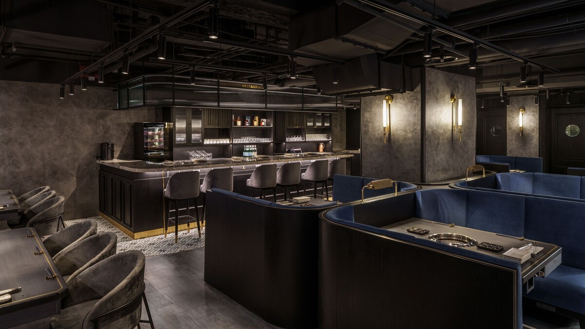 以「Speakeasy地下酒吧」為靈感,從洋風為概念所打造的神祕空間,運用了磚牆、普魯士藍並融合黑金色系等元素,呈現出經典與現代交織出的時髦美感,也營造出沉穩而優雅的空間質感。