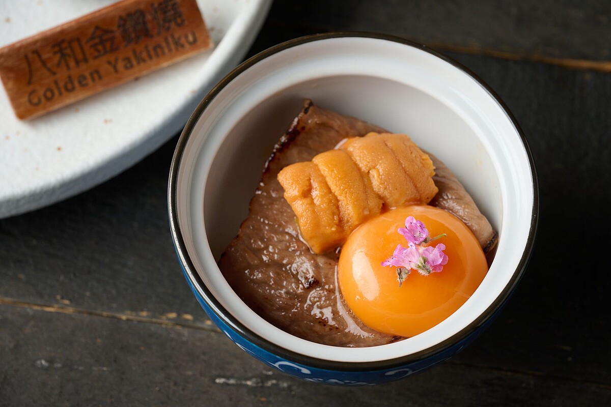 這道也讓小編為之驚艷!以壽喜燒為靈感打造,同時也是店內招牌菜色之一,將紐約客、馬糞海膽層層堆疊,再打上苗栗靈芝蛋,接著淋上自製松露油,濃郁滑順無腥味的蛋黃更增添潤細嫩口感,伴隨些許松露香氣,每口都讓人超滿足!