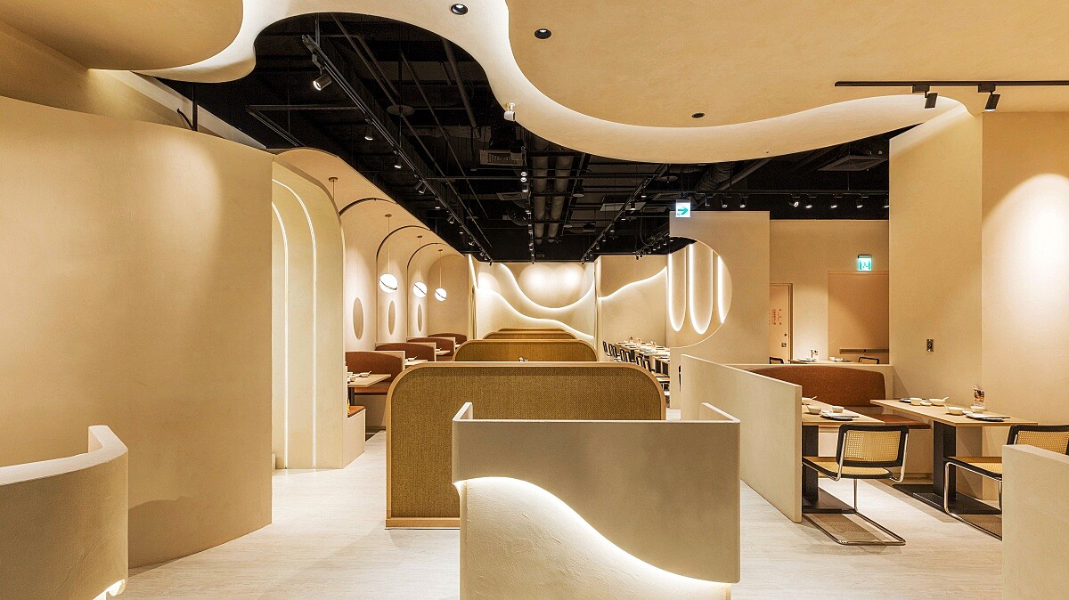 2023年正是「 華漾 DIM SUM」成立滿20個年頭的大日子,別於環球新北中和店、環球桃園A8店,全新登場的忠泰店,以蒸籠的「煙」作為主軸發想,從天花板、牆面等裝潢設計都加入行雲流水的曲線線條,把港點的靈魂精髓融入在視線所及的各處。