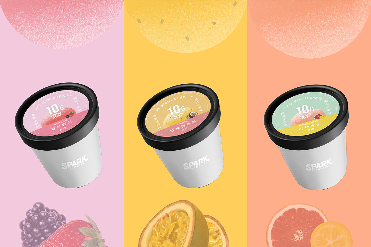 Spark Protein全新的高蛋白雪酪冰淇淋主打高纖低脂,最低熱量的口味甚至一杯不到95大卡,每杯10克優質蛋白以及高膳食纖維含量,絕對是增肌減脂期也可以大口安心吃啦!