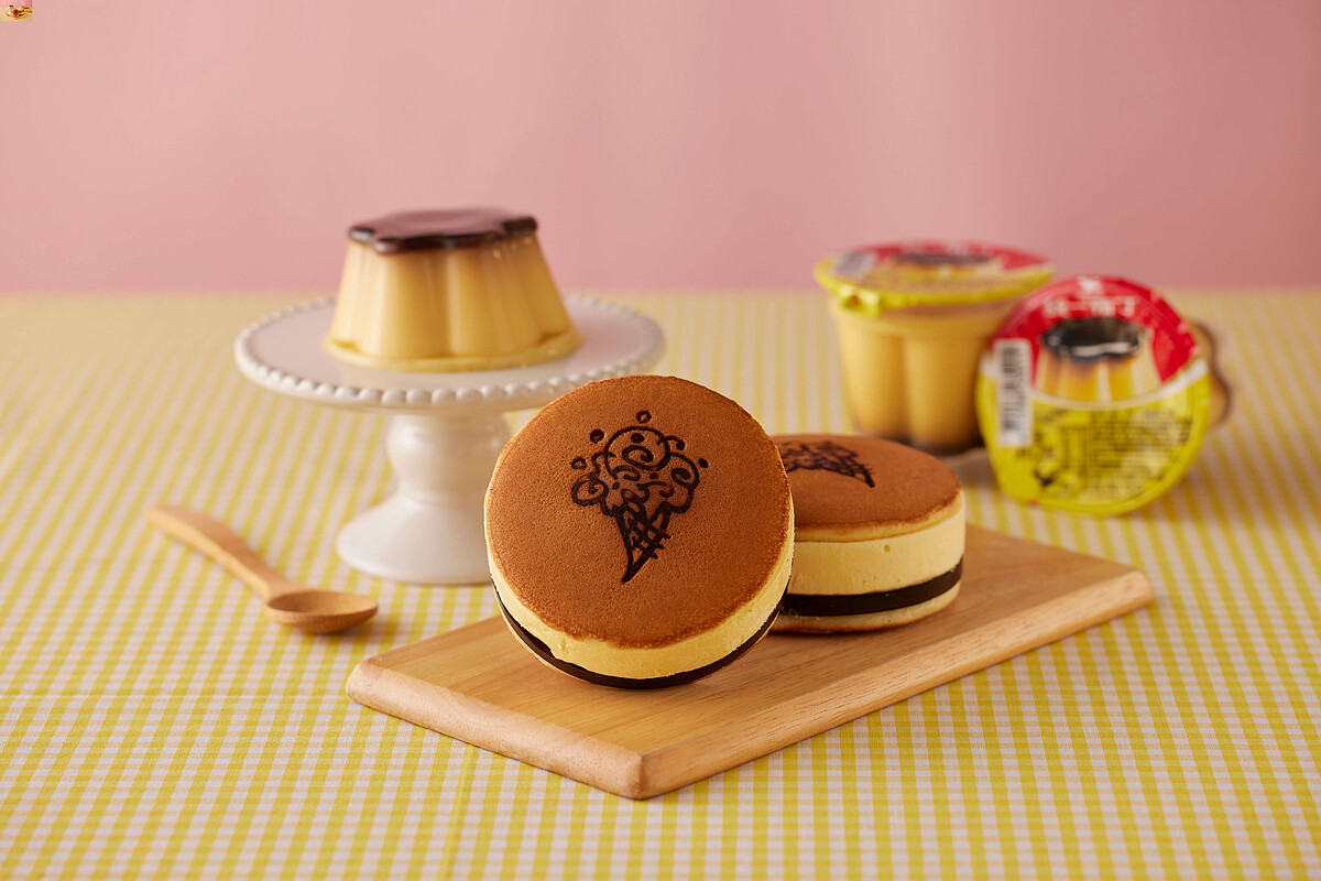 以經典香奶冰淇淋為基底,加入統一布丁製成布丁冰淇淋夾心,再夾上一層焦糖片,最後以鬆軟Q彈的餅皮包覆而成。這款甜點完美地複製了經典的美味,一口咬下,感受到幸福感滿分的療癒口感!
