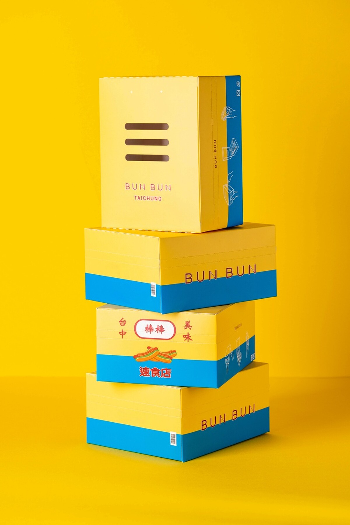 而外盒設計特別延伸東泉辣椒品牌識別色,以亮眼的黃、藍搭配台中、美味等字樣,同時也將熱狗堡插圖置入其中,時髦又帶點復古感,真的超吸睛,不論是帶去露營或野餐都超適合!