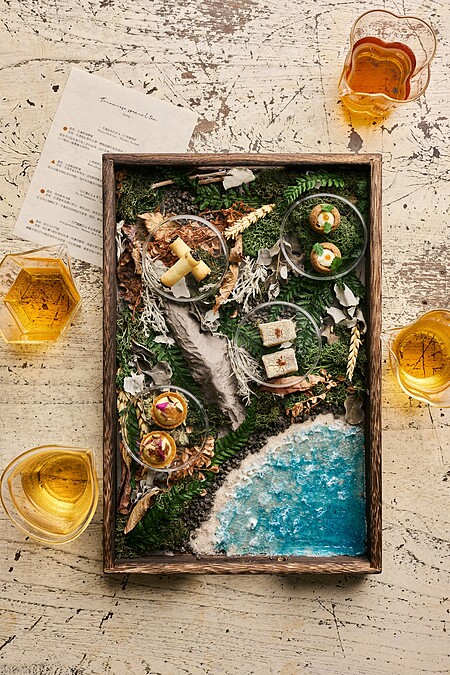 將海岸生命力與意象融入料理中,呈現出讓人為之驚艷的風味與姿態。此外,最讓人驚喜的是主廚餐桌與投影意境相互映襯,創造出宛如置身於海底星空交錯的氛圍,讓大家享受這場海洋與天際的浪漫美食之旅!