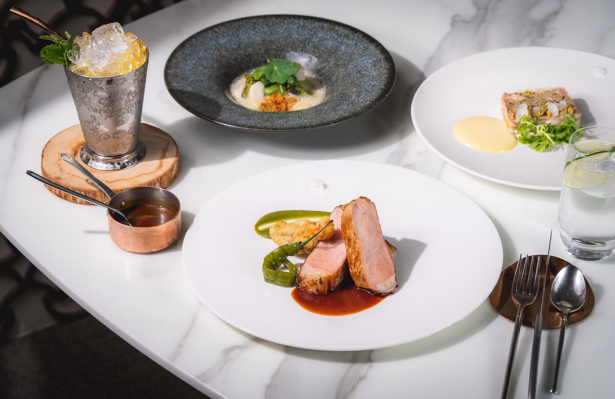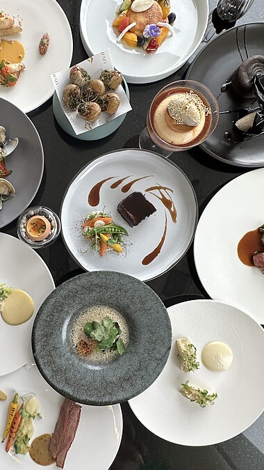 《香色》菜單提供當代精緻料理,而在2023全新菜單中,菜色結合了各式歐陸技法,同時又加入南洋及其藏族妻子的家鄉風情,充滿創意!