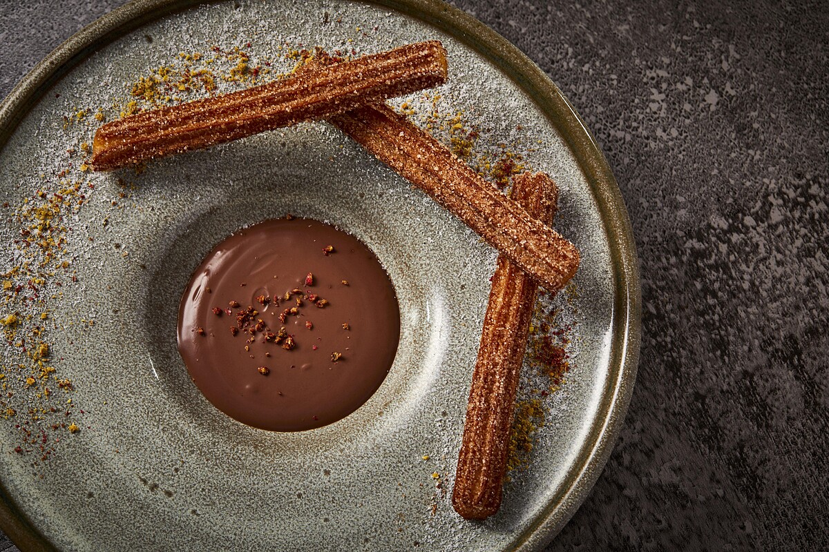 主餐則包含巴斯克烤魚、美國極佳級肋眼、老饕牛排、伊比利豬戰斧...等,大家可以依照喜好選擇;甜點則有西班牙焦糖烤布丁、巴斯克起司蛋糕、海鹽巧克力吉拿棒,推薦大家可以試試海鹽巧克力吉拿棒,口感香酥佐以72%微苦海鹽巧克力醬與陳酒和杏仁酒混合醬,香氣十足,真的太好吃啦!