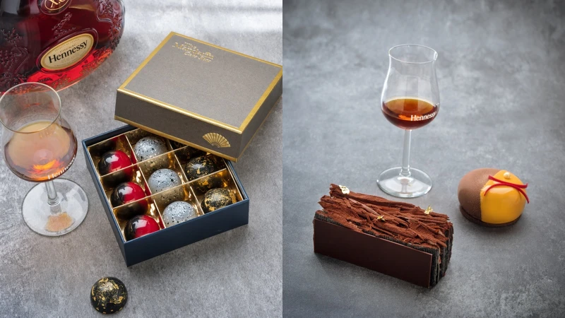雙方合作更延伸到文華餅房,推出聯名的「軒尼詩巧克力千層」、「軒尼詩巧克力杏桃」 糕點,以及有軒尼詩X.O馬卡龍、每盒九入巧克力,口味包含「66%巧克力花生」、「海鹽焦糖榛果」和「黑胡椒草莓」 ,無疑是外帶分享給親朋好友的絕佳選擇。