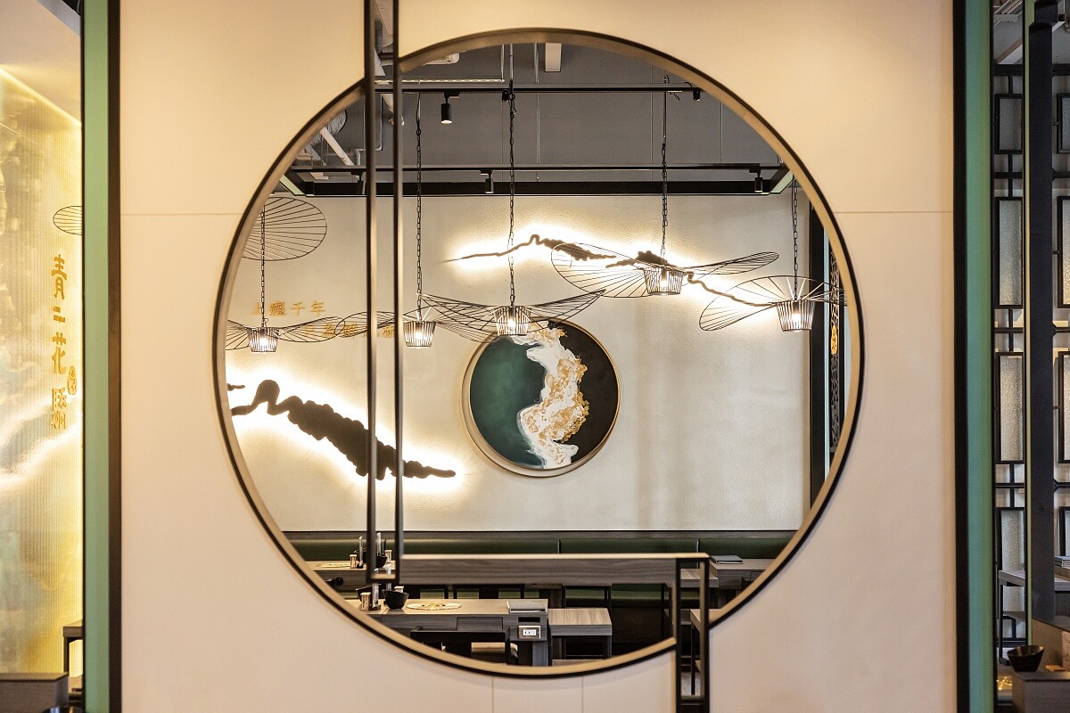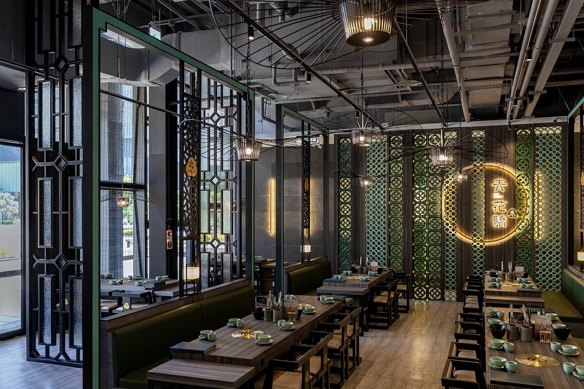 一進入店面,首先會看到為大家提供清涼的啤酒的「青花驕生啤酒吧台」,而用餐空間,以山水墨畫作為裝飾,獨特的古字牆為整個空間增添亮點,展現出典雅大氣的質感。