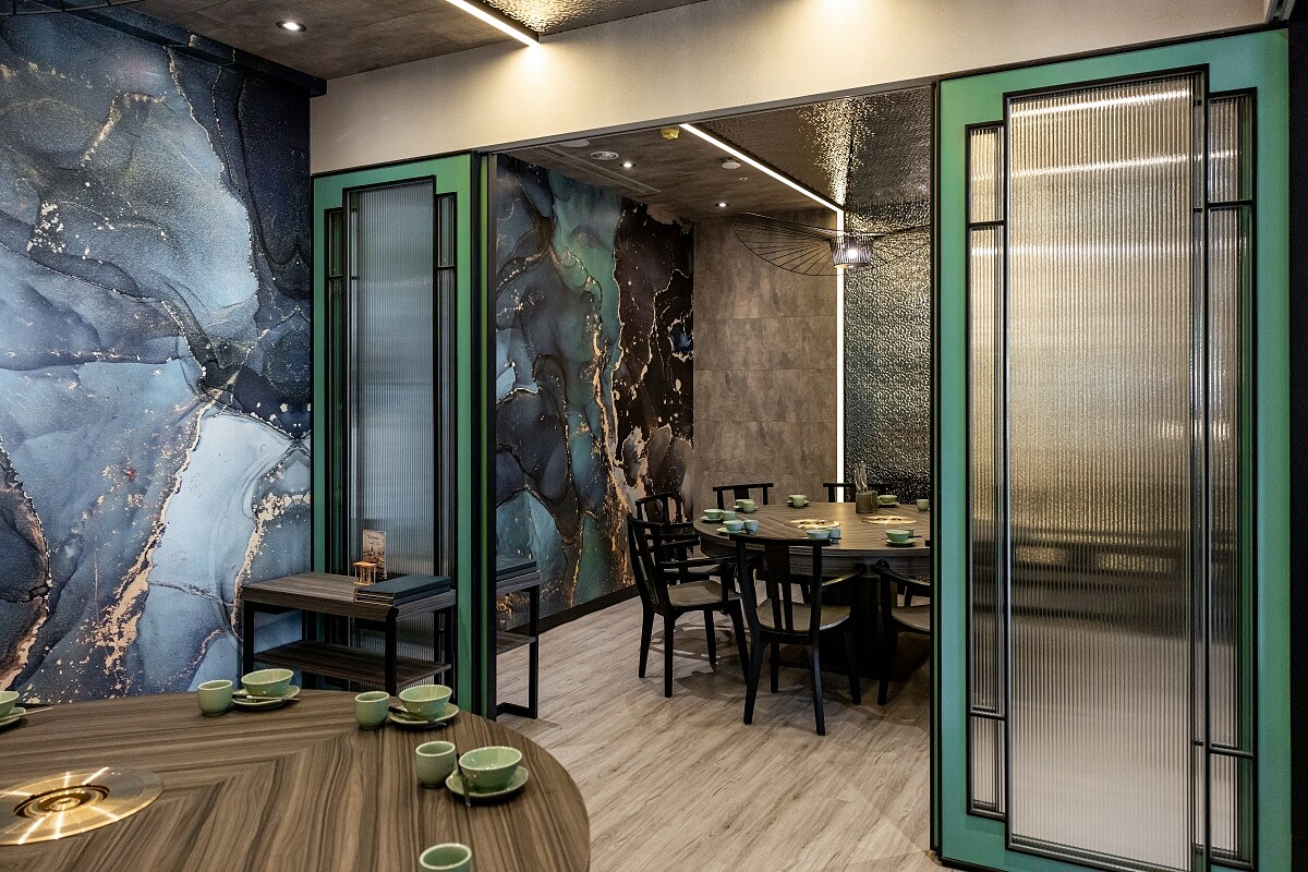 此外,《青花驕》台鋁新店還提供兩間可容納12人的大包廂,特別以銀面波浪壁飾,讓整體的奢華感更上一層樓,不論是聚餐或是約會都超適合!