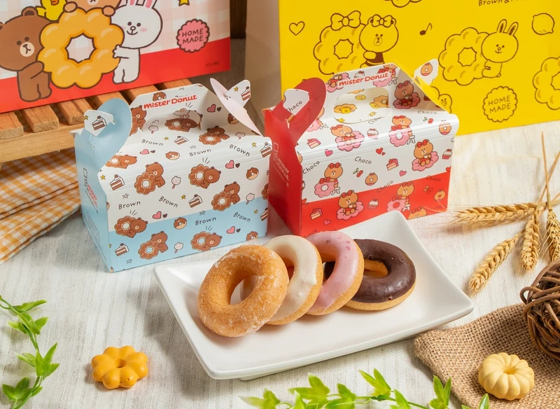 以人氣波堤草莓、蜜糖、優格、可可風味為基底的小甜甜圈,Q彈有咬勁,是下午茶嘴饞時刻的最佳點心。而紙盒特別換上LINE FRIENDS熊大、兔兔、莎莉、熊美款式,真的是萌度指數爆表啊!