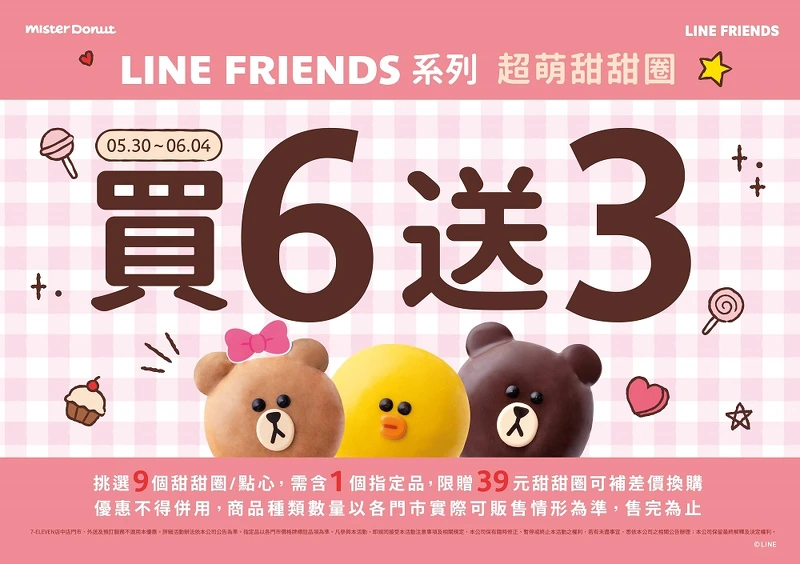 可愛爆擊!Mister Donut「LINE FRIENDS甜甜圈」&熊大莎莉必收周邊公開