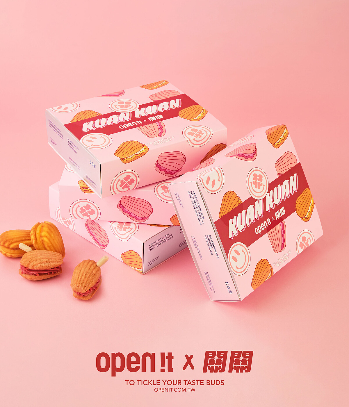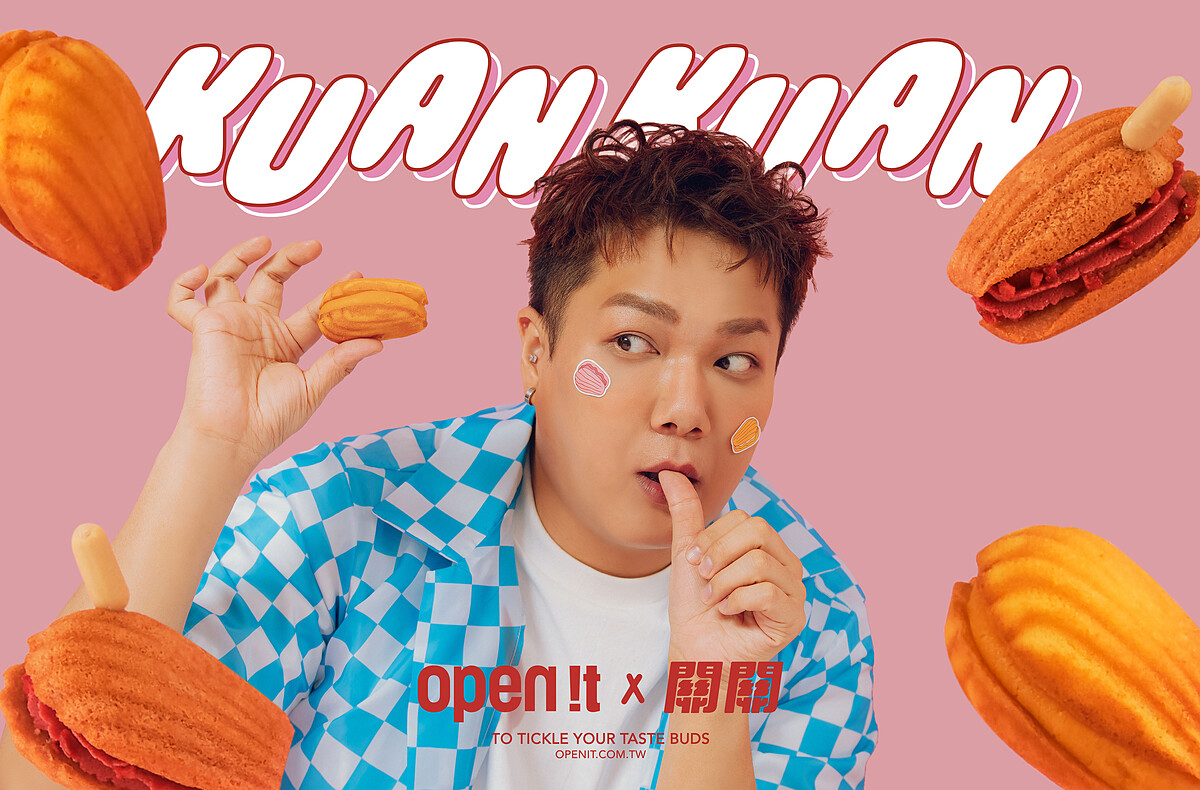 《open it.》這次首度與名人的聯名,邀請到了人氣Youtuber關關 關韶文推出夢幻聯動!打造品牌有史以來最厚的夾心內餡瑪德堡,於是取名為厚夾,也有台語讀音好吃的意思,再根據關韶文喜歡的顏色、口味、形象來發想。