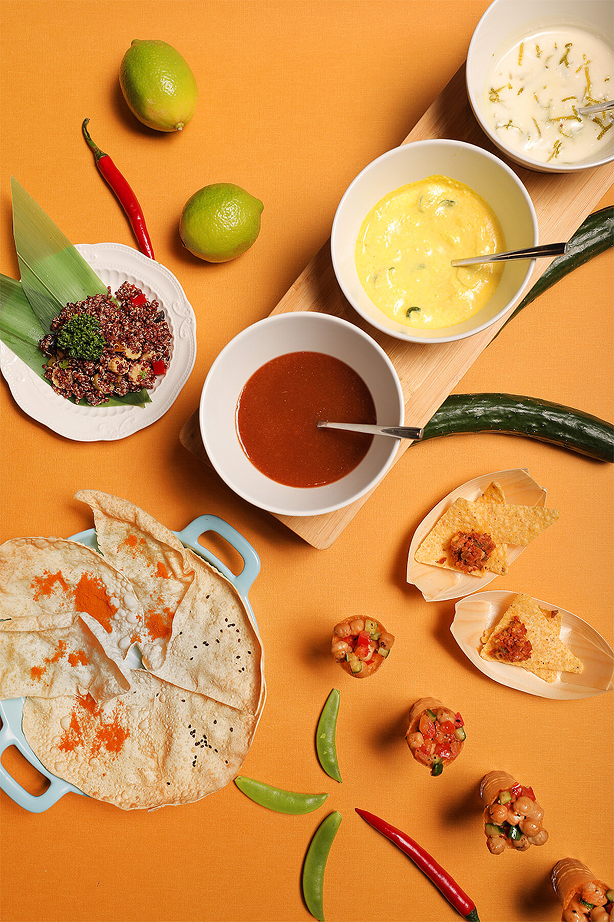 致敬北印度菜系的溫和口感,特製馬沙拉咖哩醬與芒果醬、黃瓜優格、檸檬優格一應俱全,入列「異國選品」區還原印度傳統餐桌簡單 DIY的手作烤餅趣味,等著大家嚐鮮!