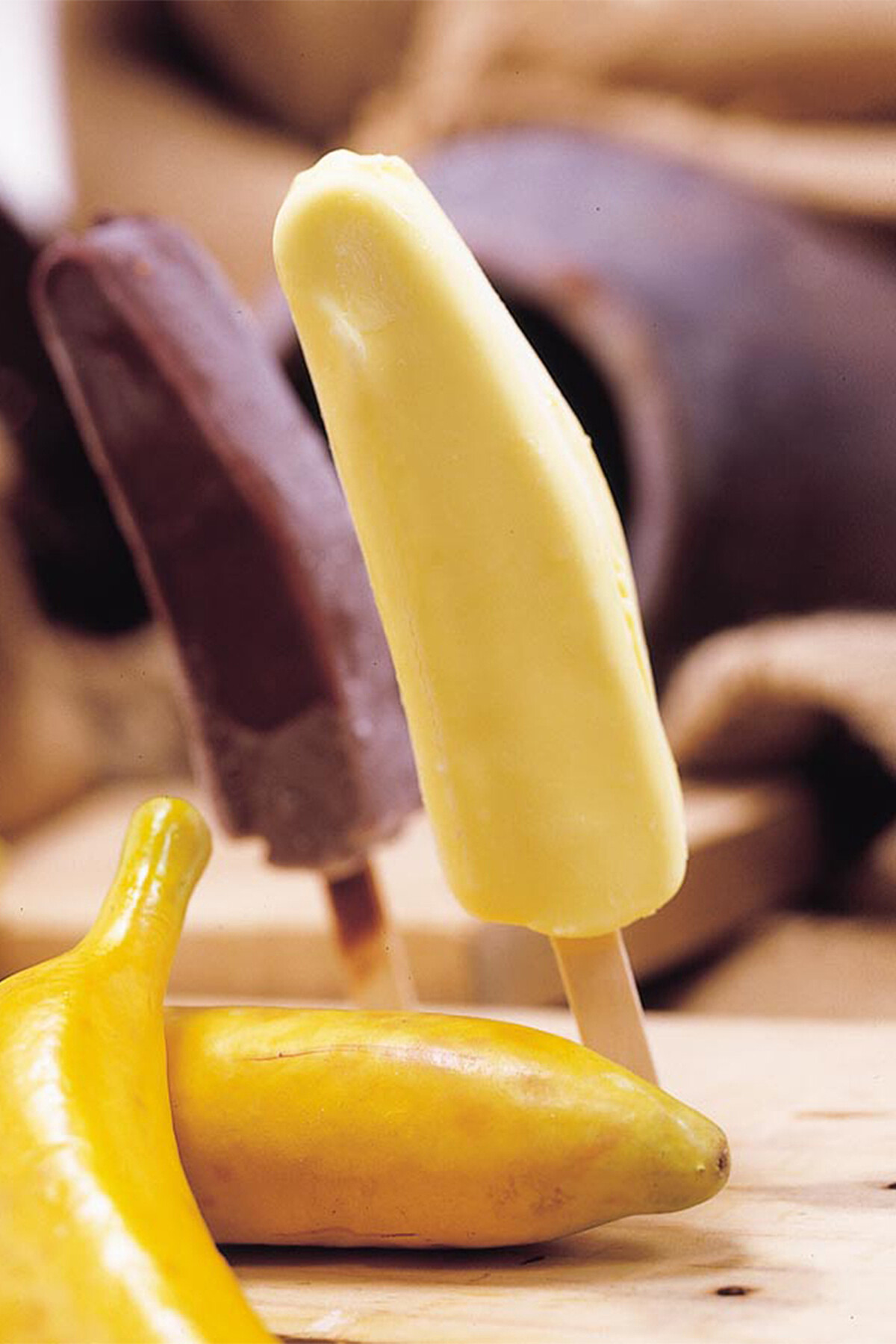 冰品控們嗨翻!嚴選了12款受冰品控五星推薦的經典冰品,其中最受歡迎的經典冰品之一是「卡哇伊造型的香蕉脆皮雪糕」,這款最能代表旗山。內餡採用來自旗山的新鮮香蕉果肉和香濃牛奶製成綿密的冰淇淋,外層再裹上巧克力脆皮,多層次的甜蜜滋味,讓人一吃就愛上。
