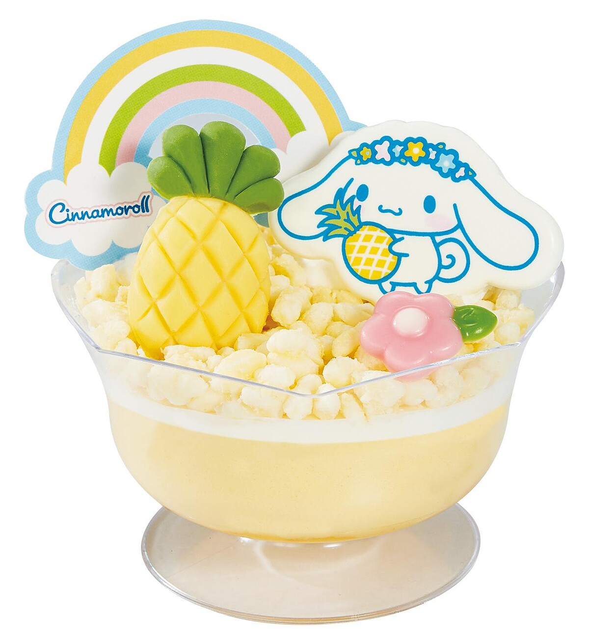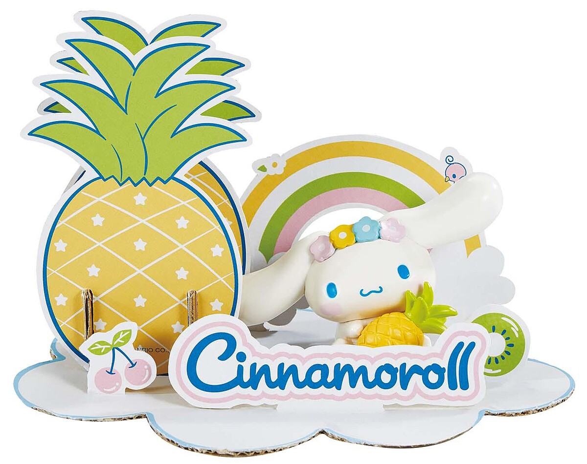 超療癒的大耳狗喜拿抱著討喜的鳳梨,在充滿巧克力雪花天空中與好友們一起舉辦水果饗宴,以可愛的水果造型巧克力、醃漬鳳梨片裝飾點綴,這麼可愛怎麼捨得吃!