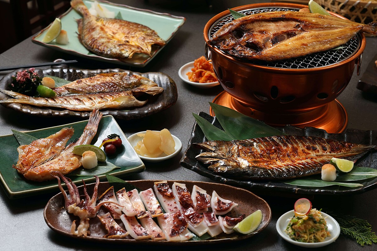 「夏日居酒屋」菜單是由晶華日料主廚張明志與三燔本家主廚洪睿呈一同規畫,除了菜單選項多元豐富,此次也特別推出啤酒的好朋友「一夜干」,由北海道花魚、澎湖現釣中卷、營養價值高的鯖魚和肉質細緻的黃魚及喜知次所製成的一夜干,經過鹽水浸泡並風乾一夜後,肉質更加緊實Q彈,再用炭火燒烤後魚皮香酥,引人食指大動,是夏日佐酒不可或缺的極品美味。