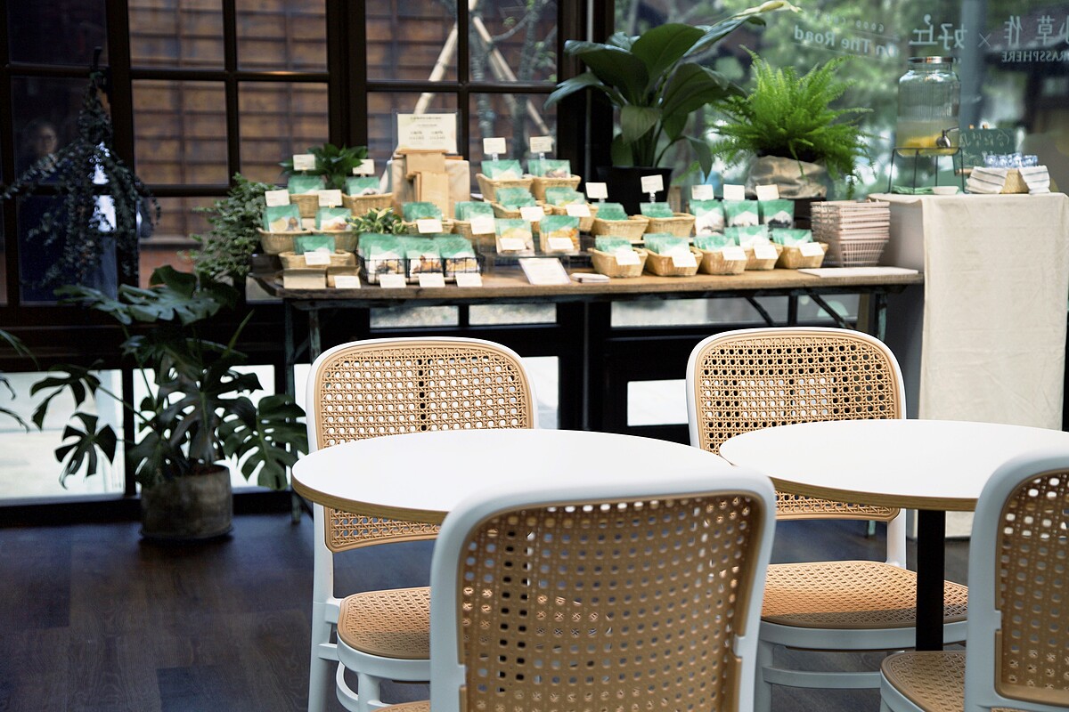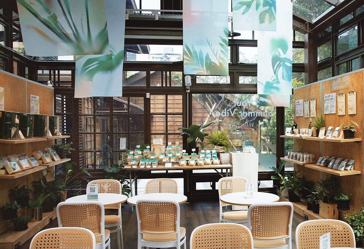 以天然在地物產創作視覺與味蕾雙重享受出名的「好丘」Good Cho’s,不只將台灣在地食材揉入貝果,亦擅長以生活美學出發打造日常風景。被譽為「台北最美玻璃屋」的《好丘 On The Road 在路上》,更是結合職人手作貝果與質感選物,將台灣在地好選擇帶到路上讓更多人發現!今年夏天更與台灣原創花草果茶第一品牌《小草作》合作,以「夏季綠意植感生活」為主題,在360度全透明無死角的玻璃屋空間中,以大量植栽作為裝飾,陽光灑落搭配全店滿滿綠意,每個角落都美感十足;室內座位周圍以盆栽點綴,讓人有種置身在溫室花園的錯覺,不論室內戶外都美翻輕鬆拍出網美照。