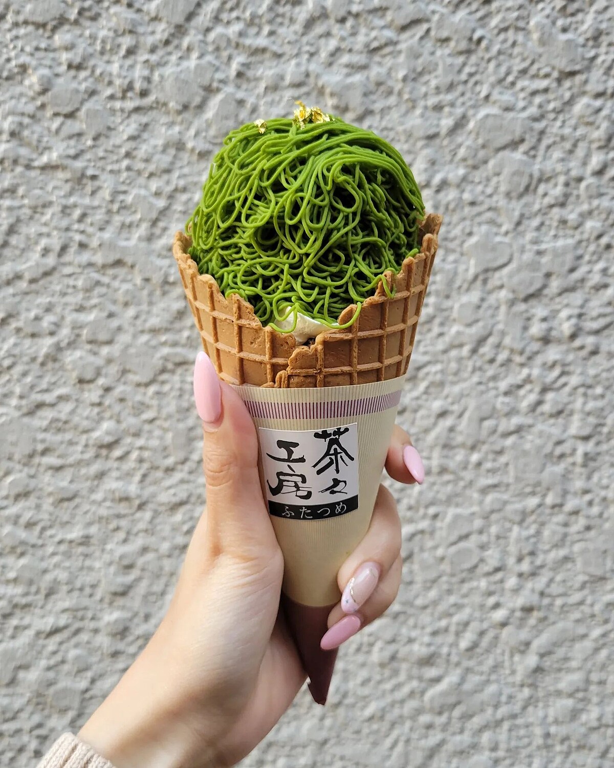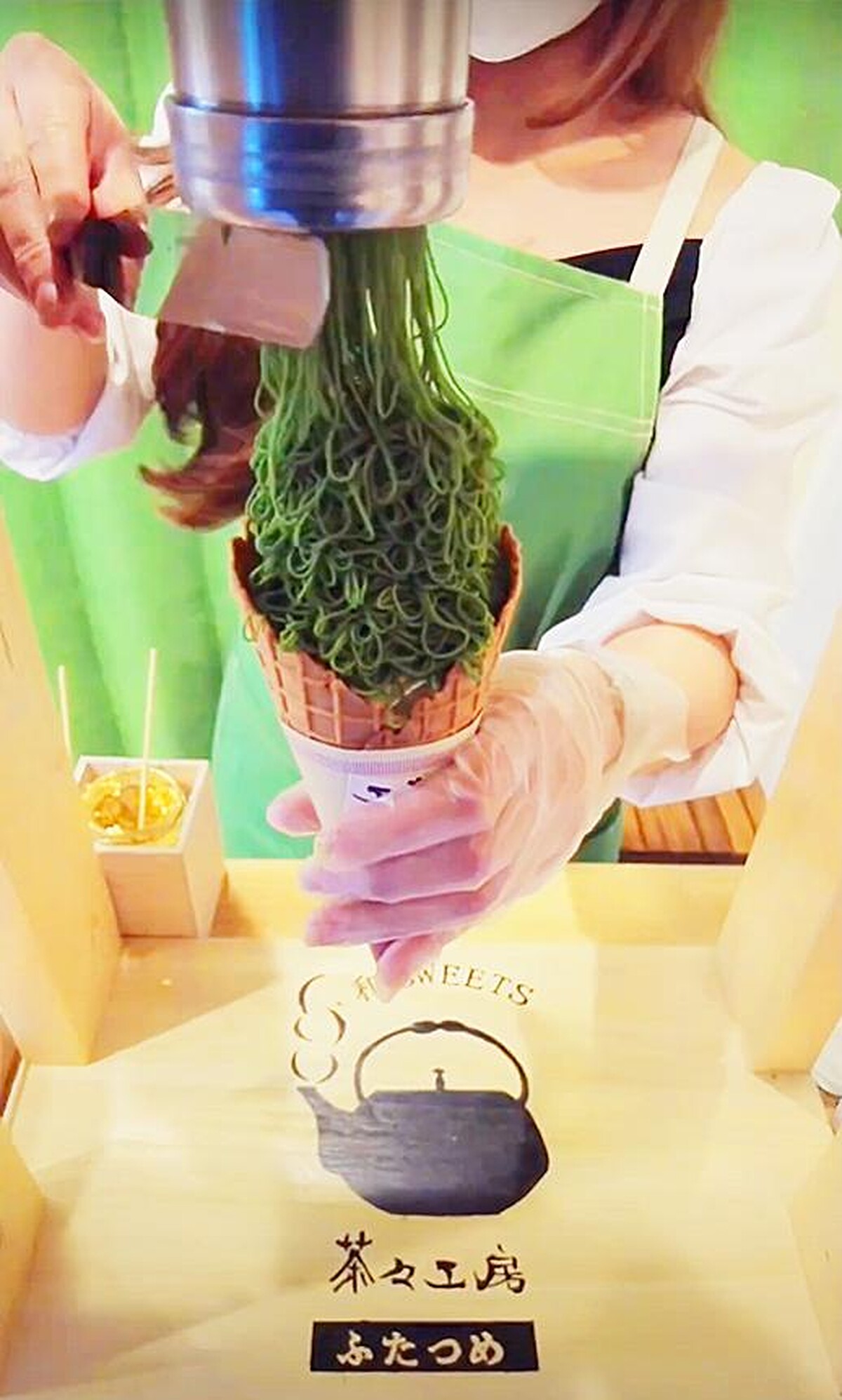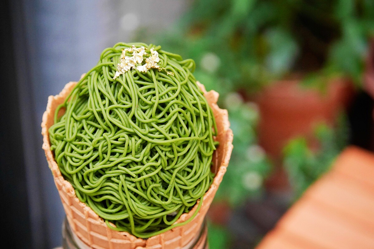 淺草雷門最新的打卡美食來了!《茶茶工房Futatsume》推出「生榨和栗抹茶蒙布朗」超誘人的外觀,一開賣就引起熱議!此外,製作過程更是一大亮點,店員現場擠出抹茶栗子泥,層層堆疊在華夫甜筒上,吸睛度爆表!