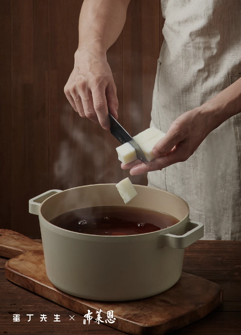 蛋白丁採用專業結凍技術製作,保留了扎實的口感更入味。以《布萊恩紅茶》的伯爵紅茶為基底,並添加了蠔油、醬油、五香粉、八角、花椒、月桂葉…等天然香料。藉由布萊恩伯爵茶中的佛手柑香氣和經典台式醍醐味的結合,展現出獨特清爽又涮嘴的好滋味。