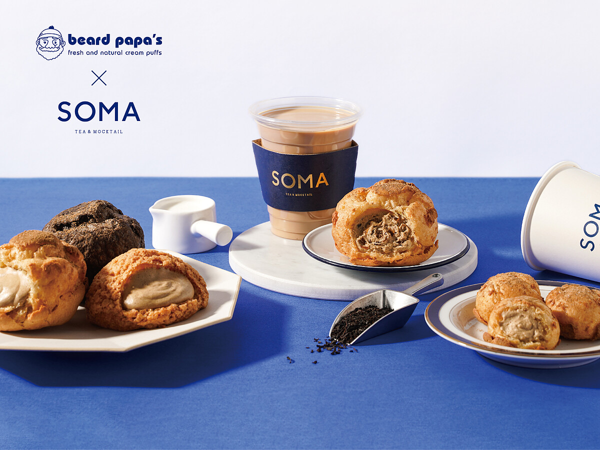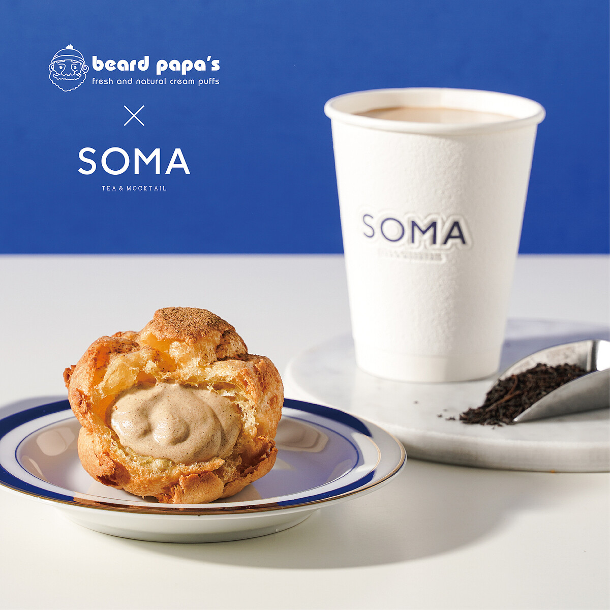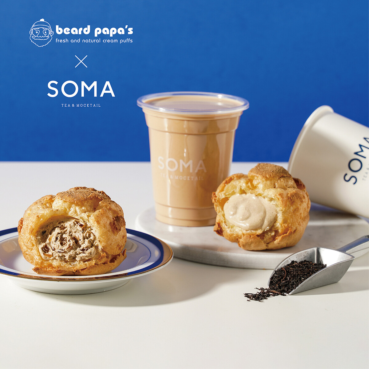 beard papa’s又出新招了!這次與人氣手搖飲品牌《SOMA》攜手合作打造出會讓奶茶控們失心瘋的「茶歐雷泡芙」,多層次的茶香內餡真的是太療癒啦!