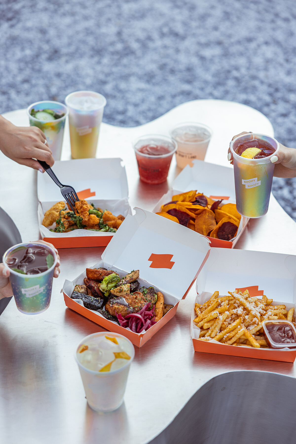 《Boozy Boozy》y有別於一般餐廳的訂位制度,無需訂位,也沒有固定的座位區,讓大家或站或坐更自在,是臨時起意、或餐後想要再續話題的聚會最佳場所。《Boozy Boozy》就像城市裡的綠洲,想替忙碌的生活按下暫停鍵,就約姐妹們來這裡放鬆一下吧!