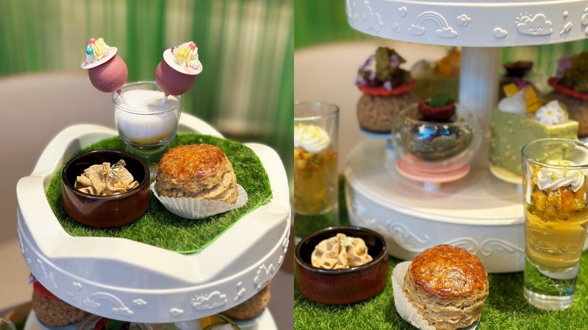 「遊樂森園 唐寧雙人下午茶Ali-Land Tea Set套餐」以「玫瑰覆盆莓棒棒糖」開場,把胭脂莓果茶 融入巧克力、玫瑰覆盆子草莓軟醬、荔枝奶油霜,為熟悉的童年記憶時注入滿滿驚喜。「小米蘭姆巴巴」將義大利甜點蘭姆巴巴改用鄒族特有小米製作,並調入「薄荷圓舞曲茶」及小米酒、佐以柳橙小米酒白蘭姆軟凍,豐富層次的茶香與酒香一次在味蕾中綻放!