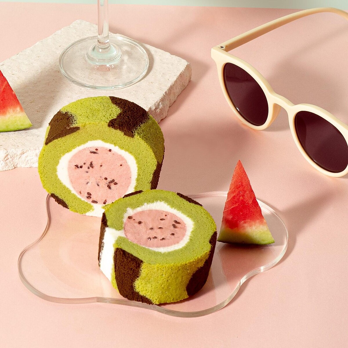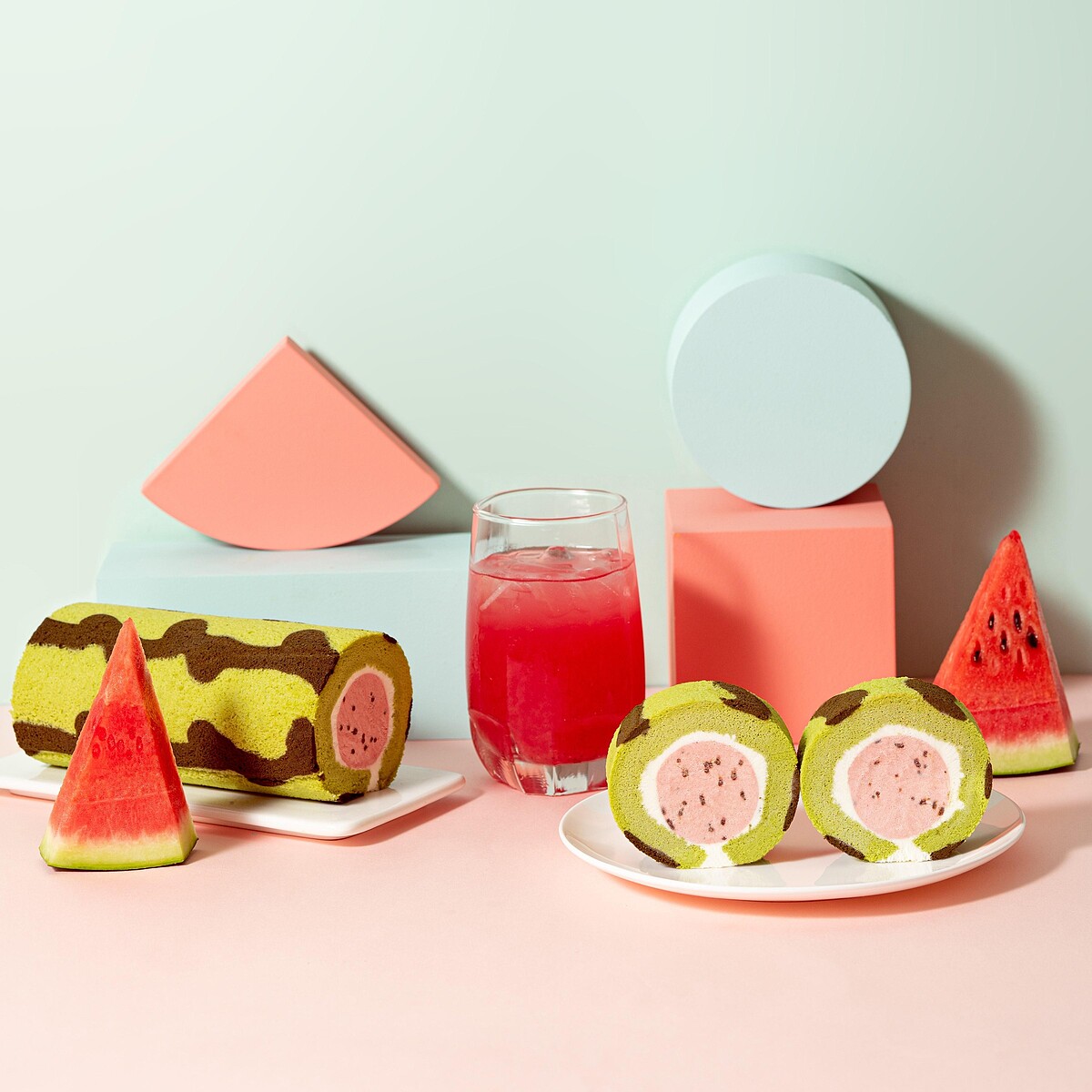 「西瓜雪糕捲」不只外觀是西瓜造型,內餡也加入了新鮮西瓜,在搭配酸甜的柚子醬與香醇蜂蜜,入口感受冰涼雪糕的獨特口感,每一口都是滿滿幸福感,不論是當作聚會、生日派對甜點都超適合!