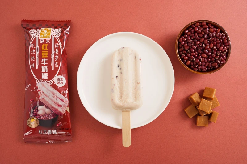 另款人氣熱銷「紅豆牛奶糖雪糕」也推出升級版!以牛乳為基底,搭配慢火熬煮的紅豆煮汁,伴隨著牛奶糖香氣,每一口都能品嚐到飽滿綿密的紅豆粒,還加入了Q彈白玉更增添口感,彷彿在吃紅豆牛奶糖,真的太療綠啦!