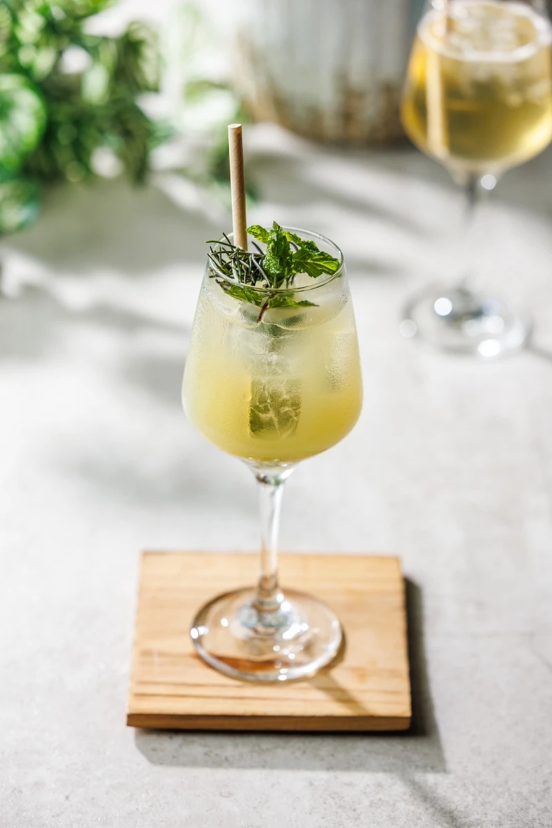 以白酒為基底,入口感受白葡萄果香,尾韻伴隨薄荷涼感與迷迭香,十分清爽。