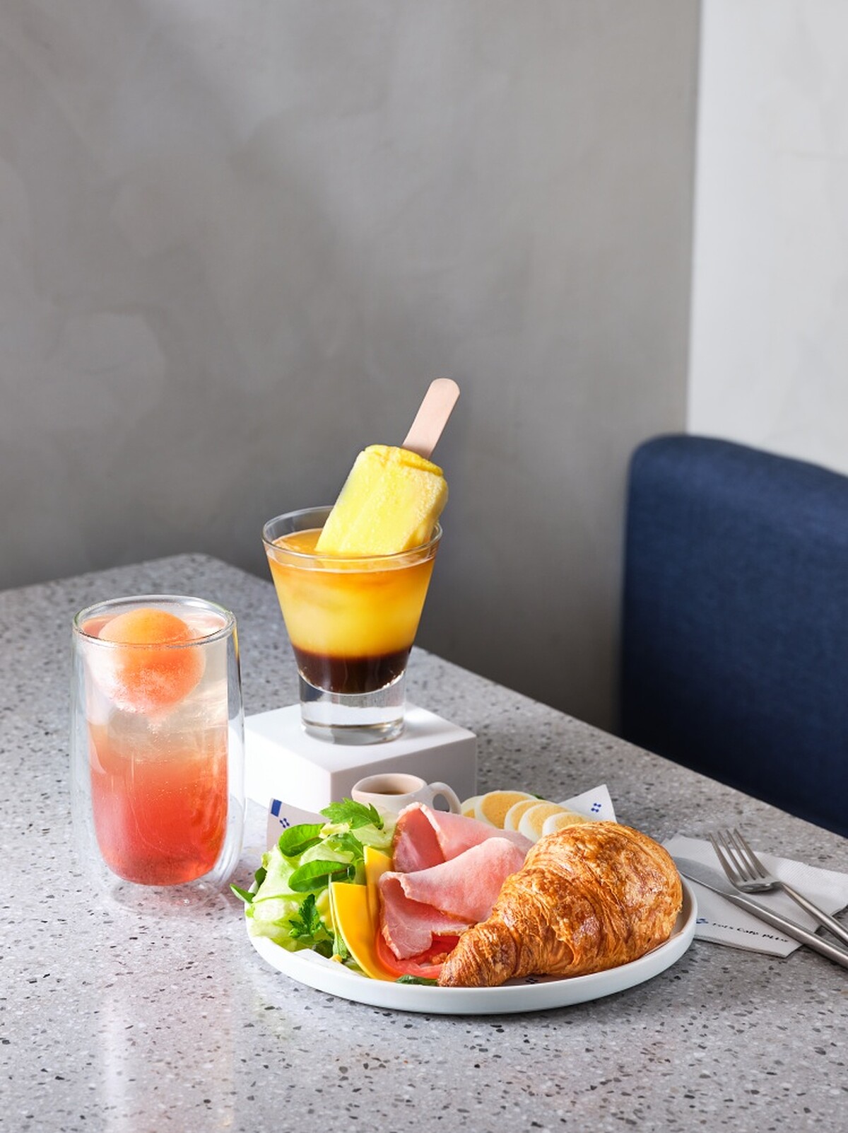以「宏都拉斯義式濃縮」為基底再搭配「橙柚百香飲」及「芒果百香雪酪」,這三樣單品大家可以依照喜好自由添加,不論是愛咖啡味濃一點、果茶香多一點,都可以自由搭配,也可以將雪酪冰棒沾上咖啡飲直接享用,別有一番風味,一次品嘗雪酪冰棒漸融的不同滋味,喝完這一杯暑氣全消啊!