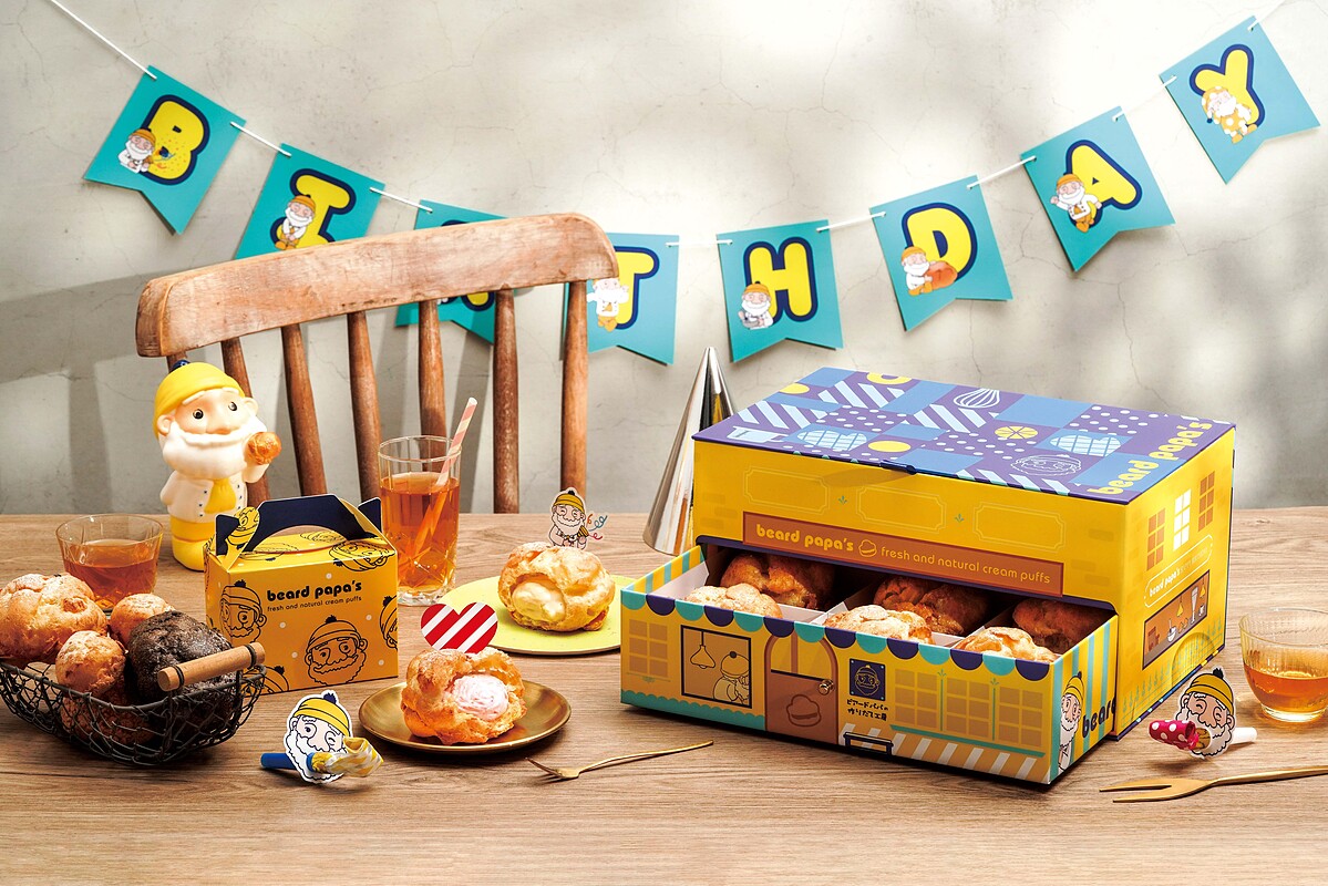 一次品嚐經典香草與8月限定口味泡芙,還有派對小物加碼歡樂氣氛,是papa 粉絲必收的夢幻逸品!