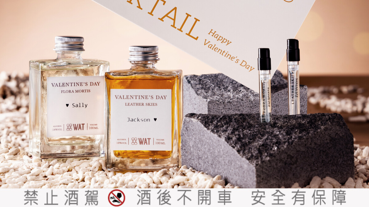 「Flora Mortis」以芬芳的玉蘭花與野薑花,混和些許肖楠木和廣藿香,交織出耐人尋味的煙燻木質花香;而一絲萊姆的酸爽,點綴出明亮滋味,讓味蕾穿梭於花香與木香之間,完美平衡;另一款「Leather Skies」以佛手柑與泰式紅茶結合,搭配一點點的椰子,就像塊抹油的皮革,優雅、溫暖;再以茉莉花和玫瑰天竺葵的清香、威士忌與檀木的溫暖,堆疊了濃郁層次,精緻地令人驚豔,帶來無與倫比的品飲體驗。兩款清爽的限定調酒,非常適合作為夏季下半場的完美開場。即日起到WAT信義店購買限量「WAT情人節香氛調酒禮盒」,享獨一無二客製化姓名酒標,感受滿滿儀式感。