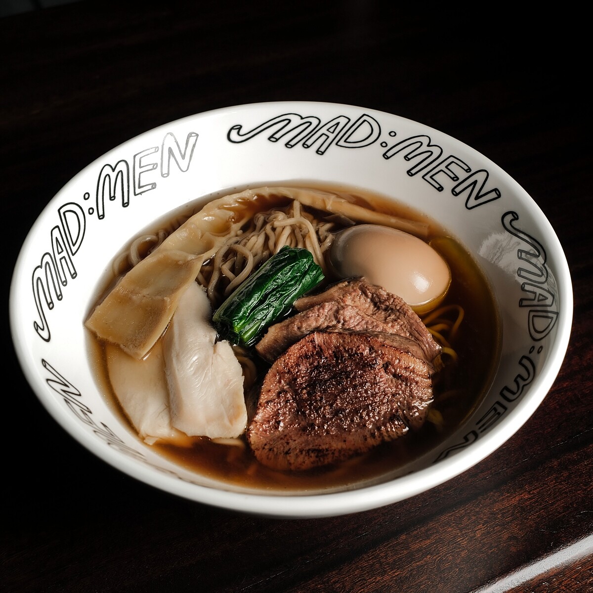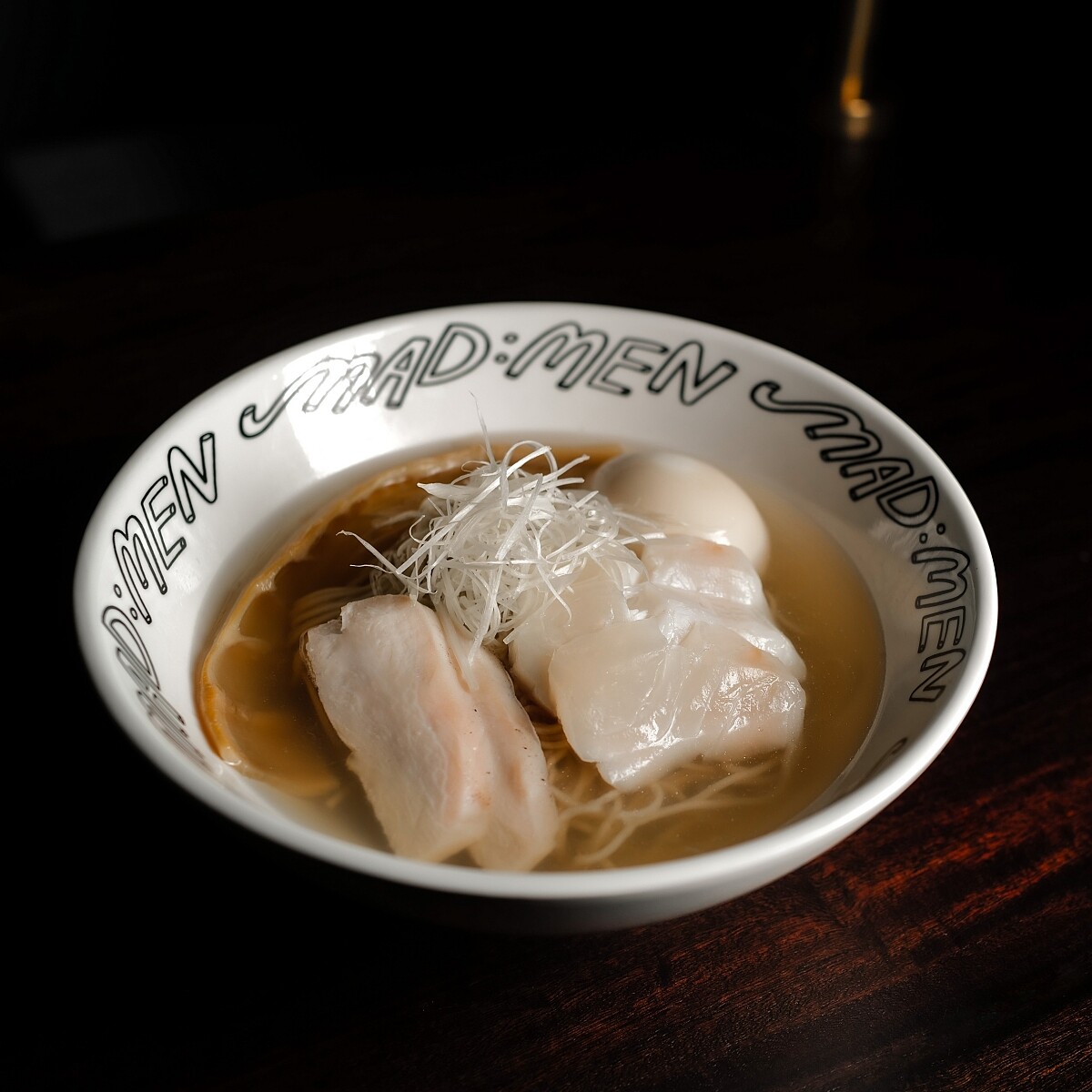什麼是「面麵」?原來是料理延伸自MAD廚房的隱藏菜單,它是介於拉麵與中華そば(soba)之間的料理,團隊以西式澄清湯(consommé)作法製作湯底,加入日式麵條與其他以熟成手法製作的配料,成為一碗溫暖、清爽在深夜吃來毫無罪惡感的舒心湯麵。