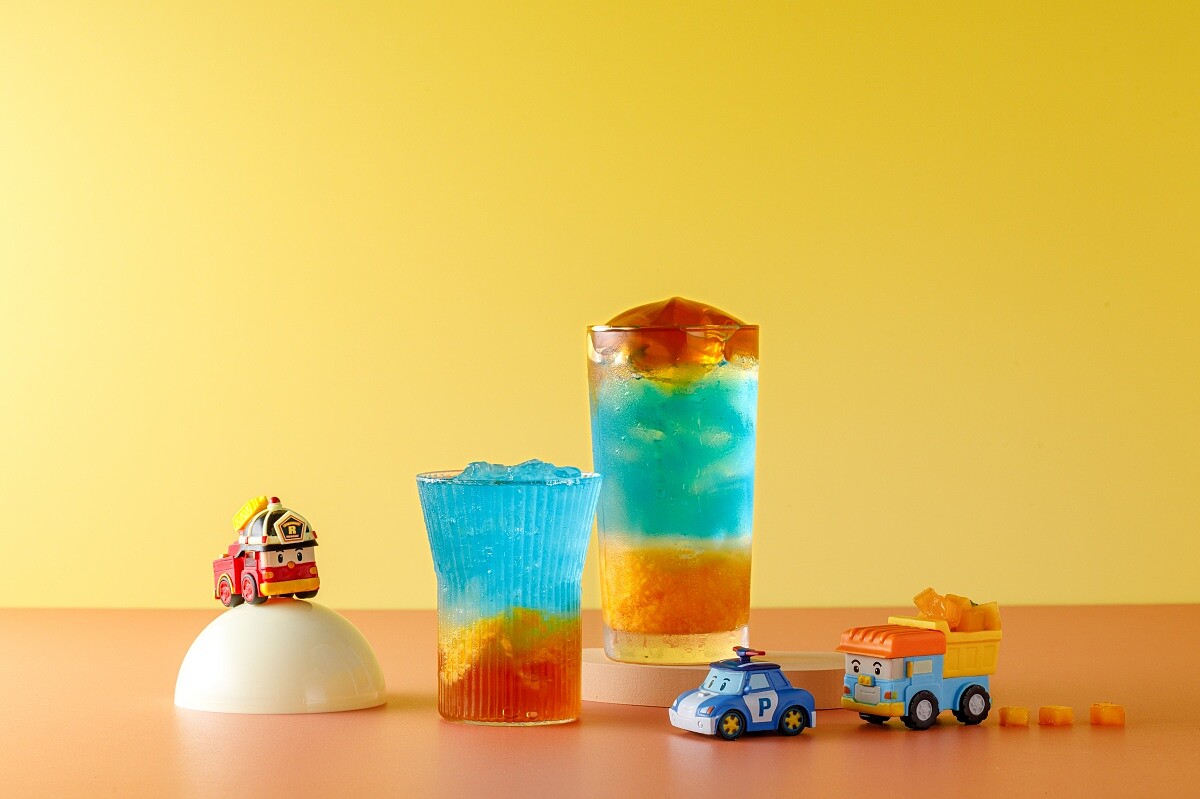 「炫藍波力」以勇敢的救援隊長波力命名,共有莎莎、凍飲兩種口感可以選擇,莎莎是帶有小碎冰的口感,每口都超消暑,而冰茶凍飲能細細品味細緻茶香。