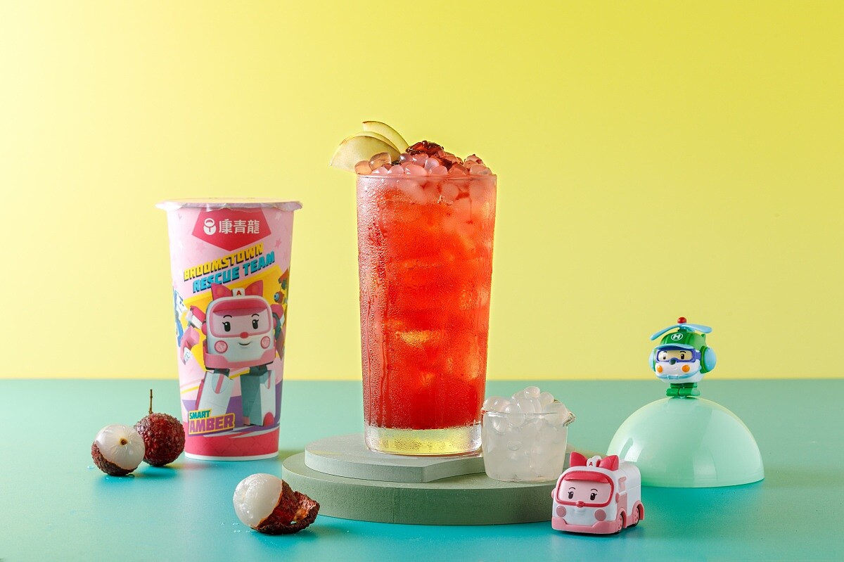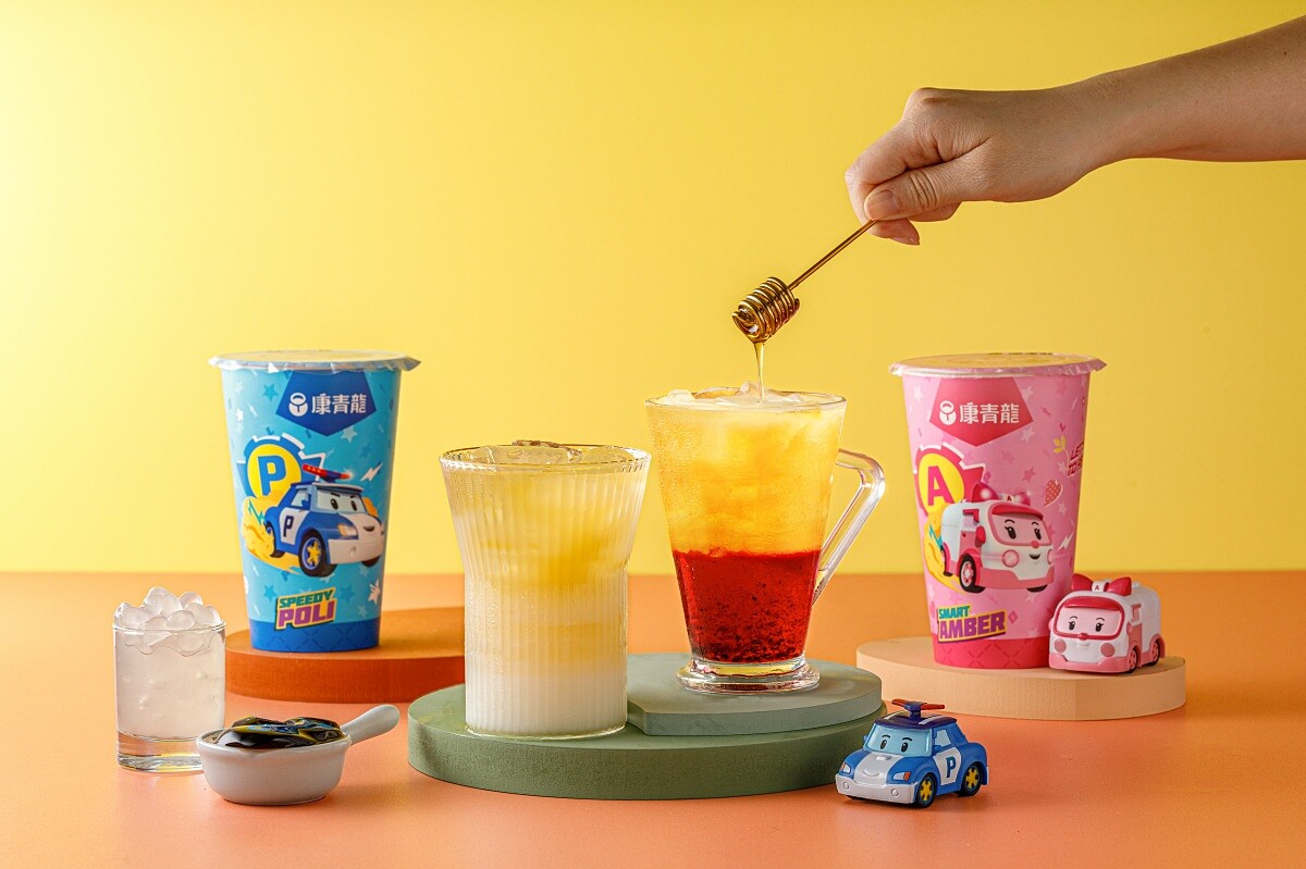 康青龍為了喜愛波力的小粉絲們推出無咖啡因飲品的「小小英雄杯」,還能免費加料!而「蜜香鮮奶」加入了甘甜溫潤的蜂蜜與新鮮鮮奶,香濃不膩口。小朋友們還可以依照自己喜愛選擇寒天或仙草,打造屬於自己的小小英雄杯。