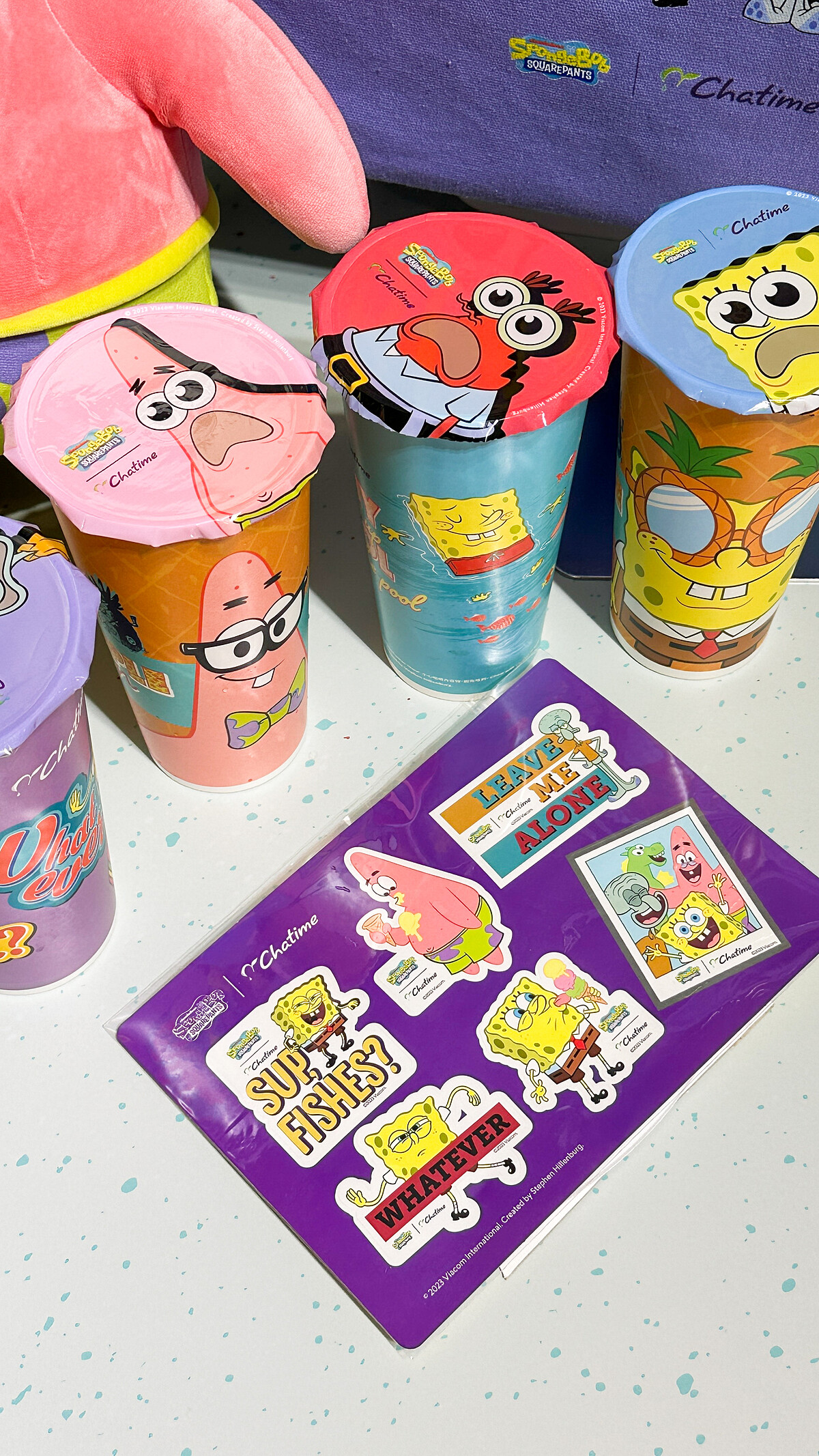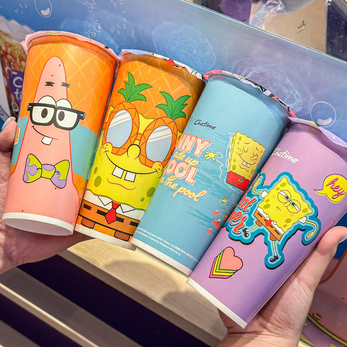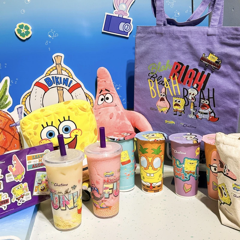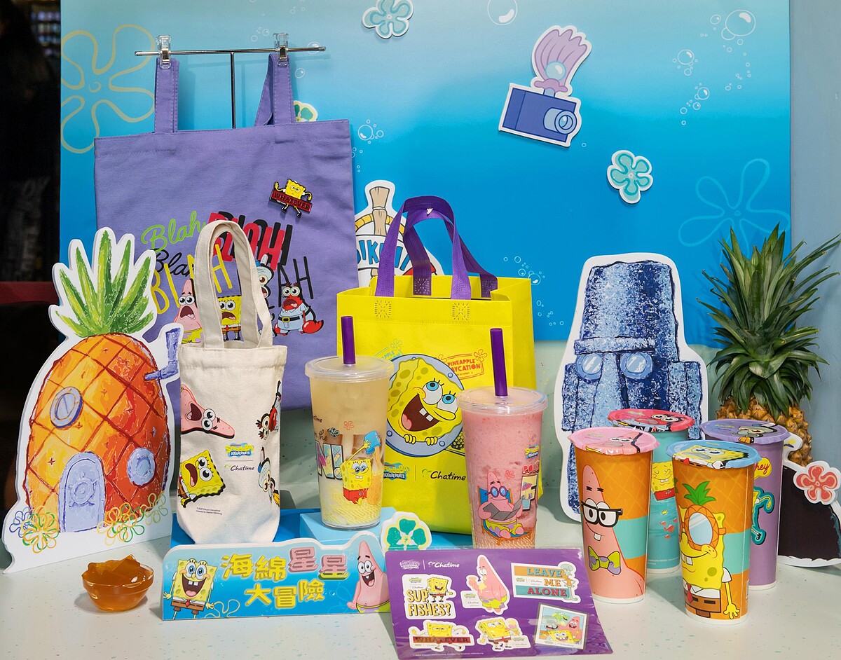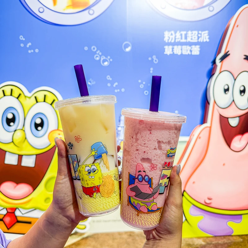 《日出茶太》首度攜手人氣IP「海綿寶寶」跨界合作,以海綿寶寶與派大星為靈感打造聯名飲品,更打造4款飲料杯身和封膜,看得到章魚哥、蟹老闆、派大星…等人氣角色,吸睛指數爆表!