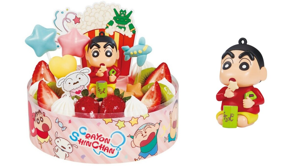 蠟筆小新與小白準備展開一場甜點派對的大冒險,以滿滿水果與造型巧克力點綴,真的超吸睛!而蛋糕上蠟筆小新公仔附磁鐵不只可以當冰箱貼,也可以找掛繩掛在包包上當吊飾,爆炸可愛!