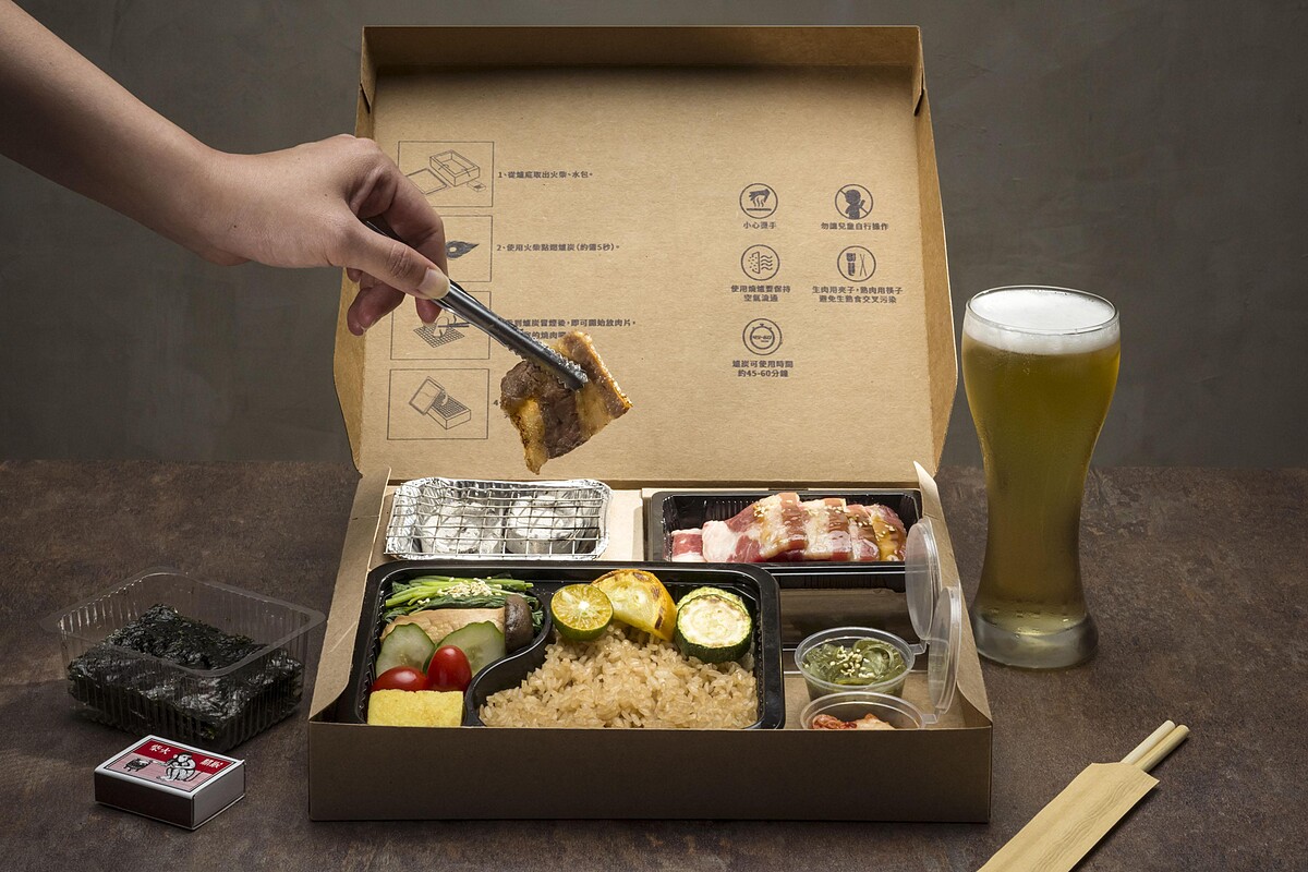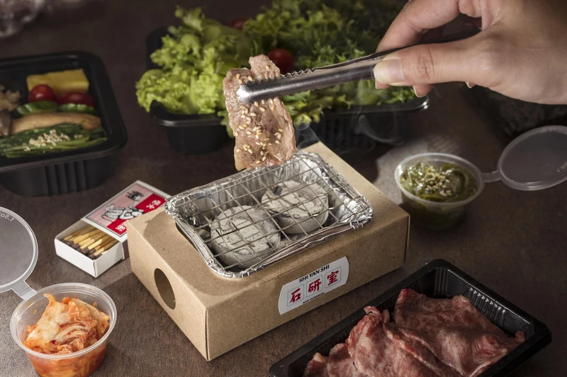 「杉中寶盒」餐盒中除了有主廚特製紅茶釜飯、各式小菜、石研室特製赤sir醬與新鮮肉片外,最大的亮點就是擁有完整的燒烤設備,包含無煙爐炭、火柴、小烤夾及滅火用的水包一應俱全,大家只需按照附給的爐炭,火柴搭配使用,就可以輕鬆又安全的享受現烤燒肉樂趣與美味啦!