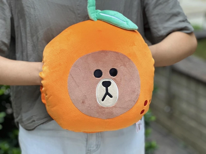 Mister Donut 把LINE FRIENDS人氣明星熊大變身超軟Q抱枕啦!熊大化身為應景著時的酸甜柑橘,可抱可靠還可暖手,不論放在辦公室或家裡都超適合!