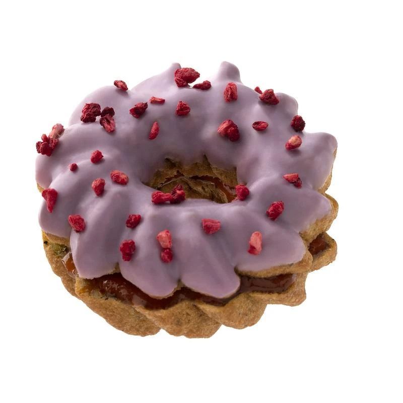 使用綠茶風味芙樂奇結合清爽酸甜柳橙、百香果內餡及酸甜百香果風味沾醬,蹦出明亮襲人的風味層次感,最後以蜜漬橘香皮點綴,入口化身消暑的柳橙百香綠茶!