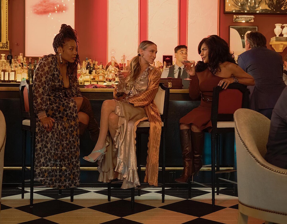 在許多美劇和好萊塢電影裡,許多火辣辣的夜晚故事都從酒吧相遇開始。當凱莉的房仲經理人Seema説要帶女孩們「見世面」,選的地點就是五星飯店Baccarat Hotel樓下的酒吧,復古棋盤格地板搭配華麗的水晶吊燈,小酌起來別有微醺氣氛!
