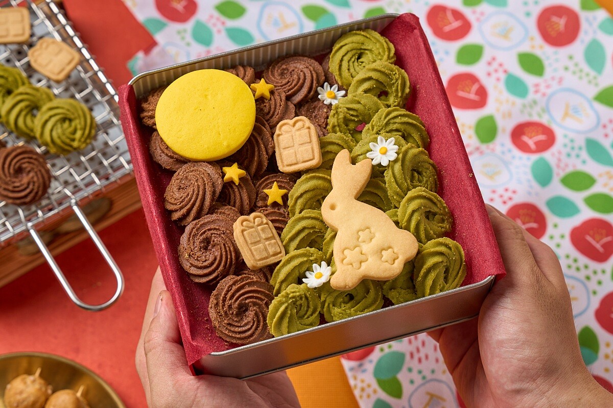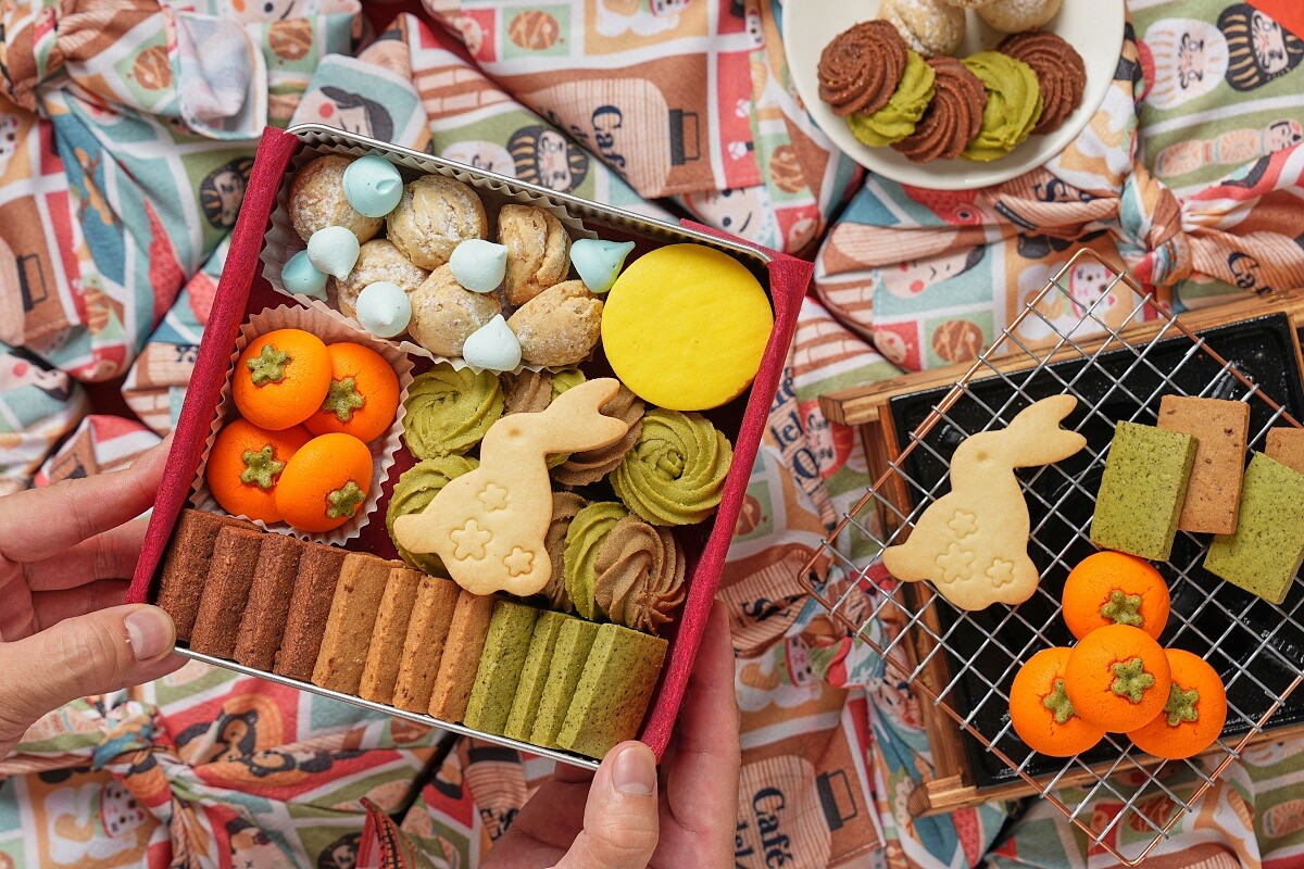 內容物:檸檬滿月、鹹蛋黃柿子、核桃雪球餅乾、青抹茶杏仁沙布列、黑糖沙布列、彈珠汽水馬林糖、巧克力沙布列、抹茶曲奇、培茶曲奇、兔子造型沙布列