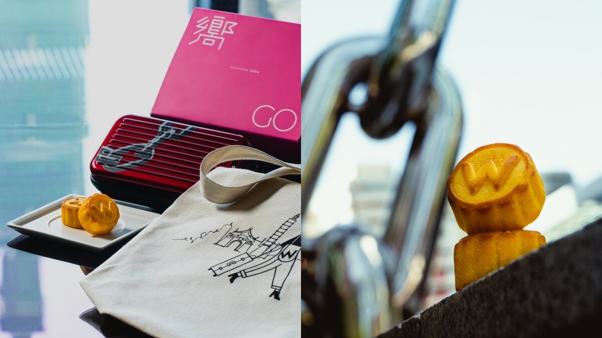 深受年輕族群喜愛的台北W飯店,將門口的巨型鎖鏈裝置化作「GO 嚮」月餅禮盒主視覺元素!禮盒內含6顆香滑奶皇月餅,以及便攜式旅行包、帆布提袋托特包,可以當作收納盒外,更是出遊旅行最佳良伴,售價1280元。