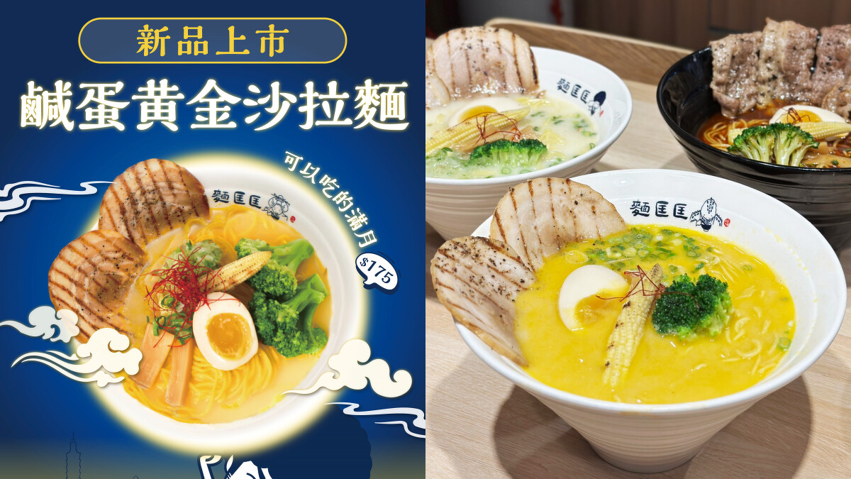 麵控失心瘋!吾蜂美味集團旗下、2022年起迅速展店的「麵匡匡」,在2023年中秋節前夕推出創意口味全新力作:鹹蛋黃金沙拉麵,黃澄澄的湯頭色澤盛裝在碗中相當應景,儼然是一道「可以吃的滿月」!