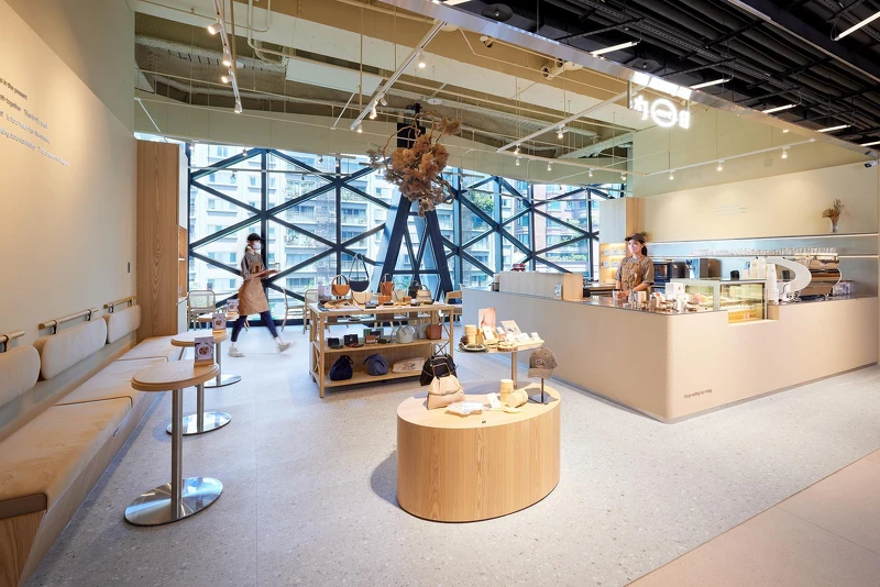 由2016年WBS世界咖啡師大賽冠軍吳則霖所創立,曾被評選為「世界最佳50咖啡館」、「亞洲最佳50」雙冠軍,這次以TO GO概念店進駐,店裝以「森林-無盡藏」為主軸,墨綠色大理石吧台像森林裡長滿苔綠的石階,襯著真實樹皮組構的背牆,咖啡香味瀰漫,猶如城市裡的綠洲。為慶祝試營運,興波咖啡獨家設計兩款飲品/甜品:「東加拿鐵」、「蛋黃酥阿芙加朵」,後者鹹香流沙與紅豆的經典組合,將著名的義式咖啡甜點融入台灣特色!